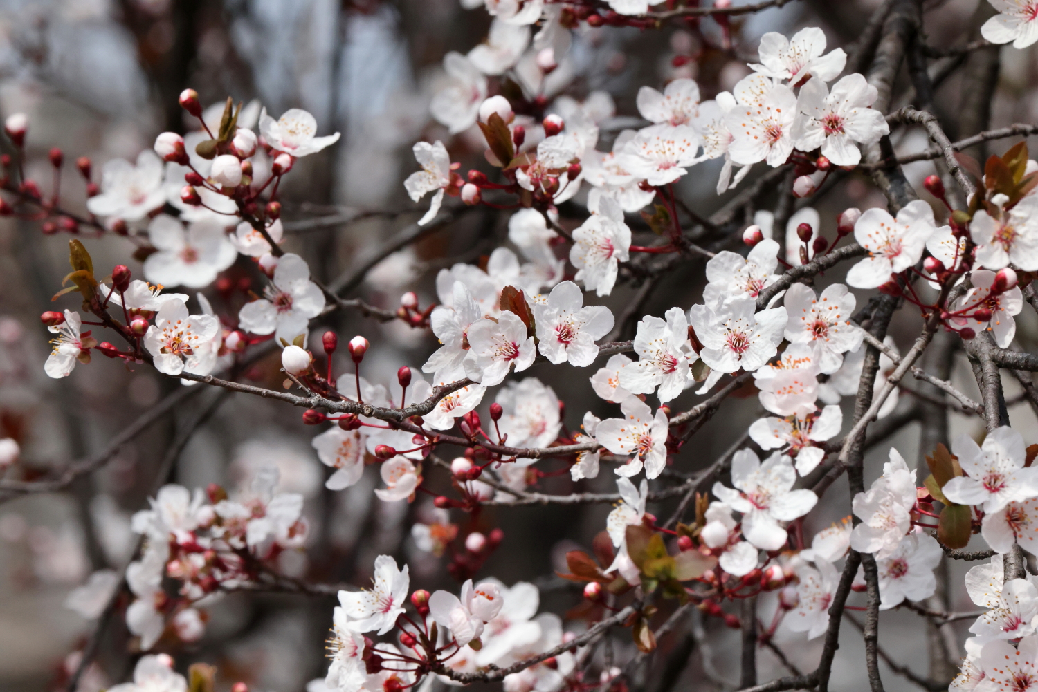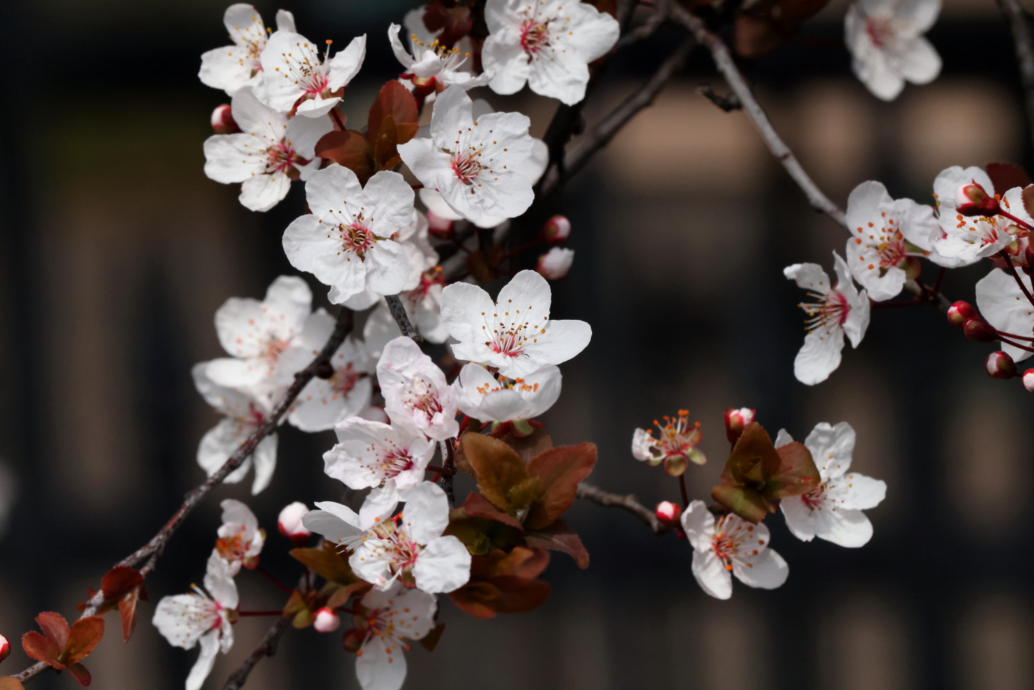 ベニバスモモは、葉の色が特徴のスモモの仲間で、赤い葉をつけるのでこのように呼ばれています。