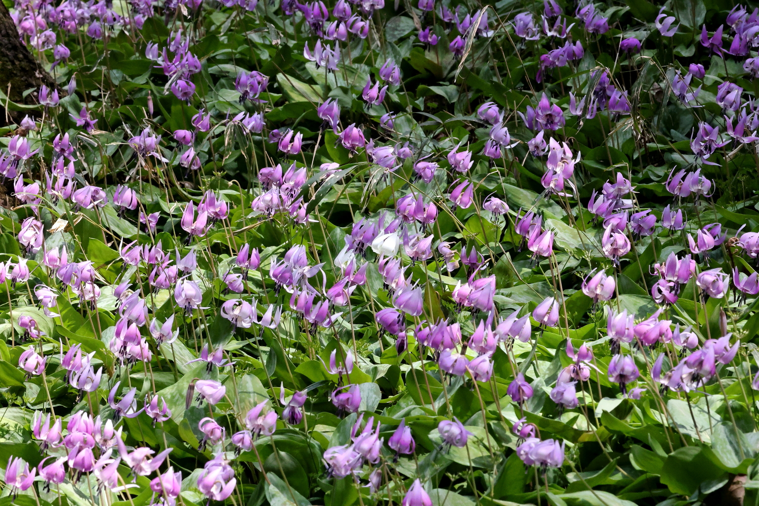 ☆兵庫県丹波市で超密集群生して咲き誇っていた「カタクリ」(貴重な白花も)