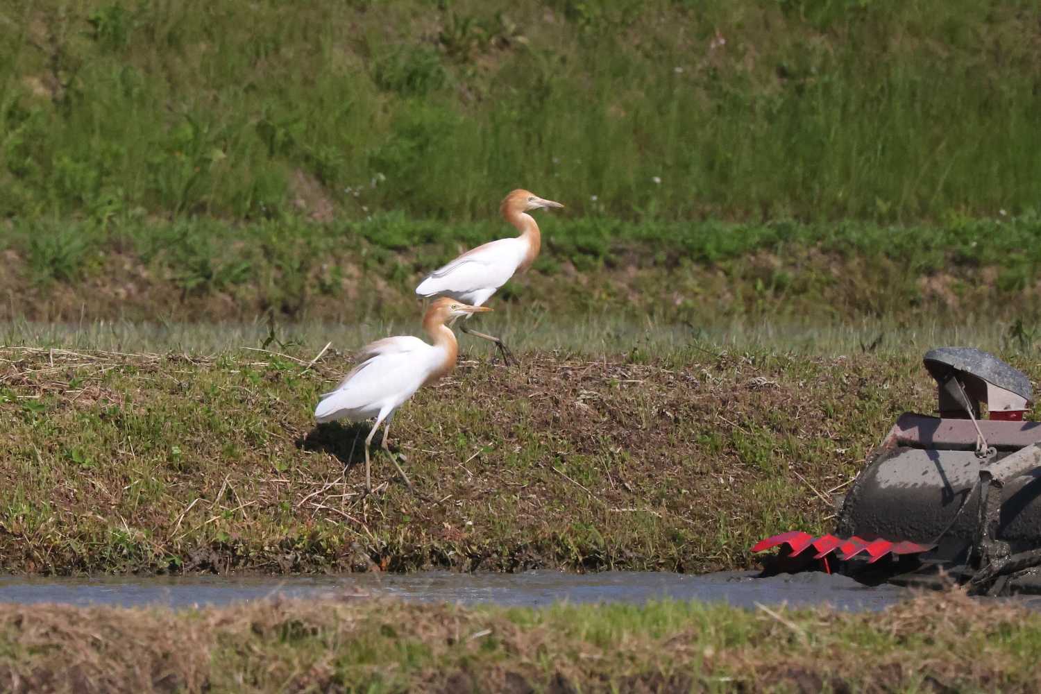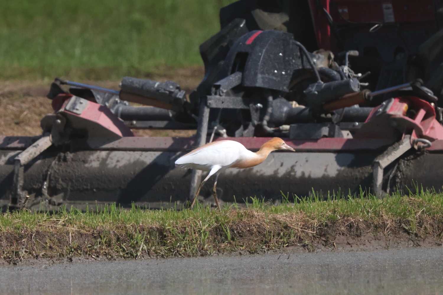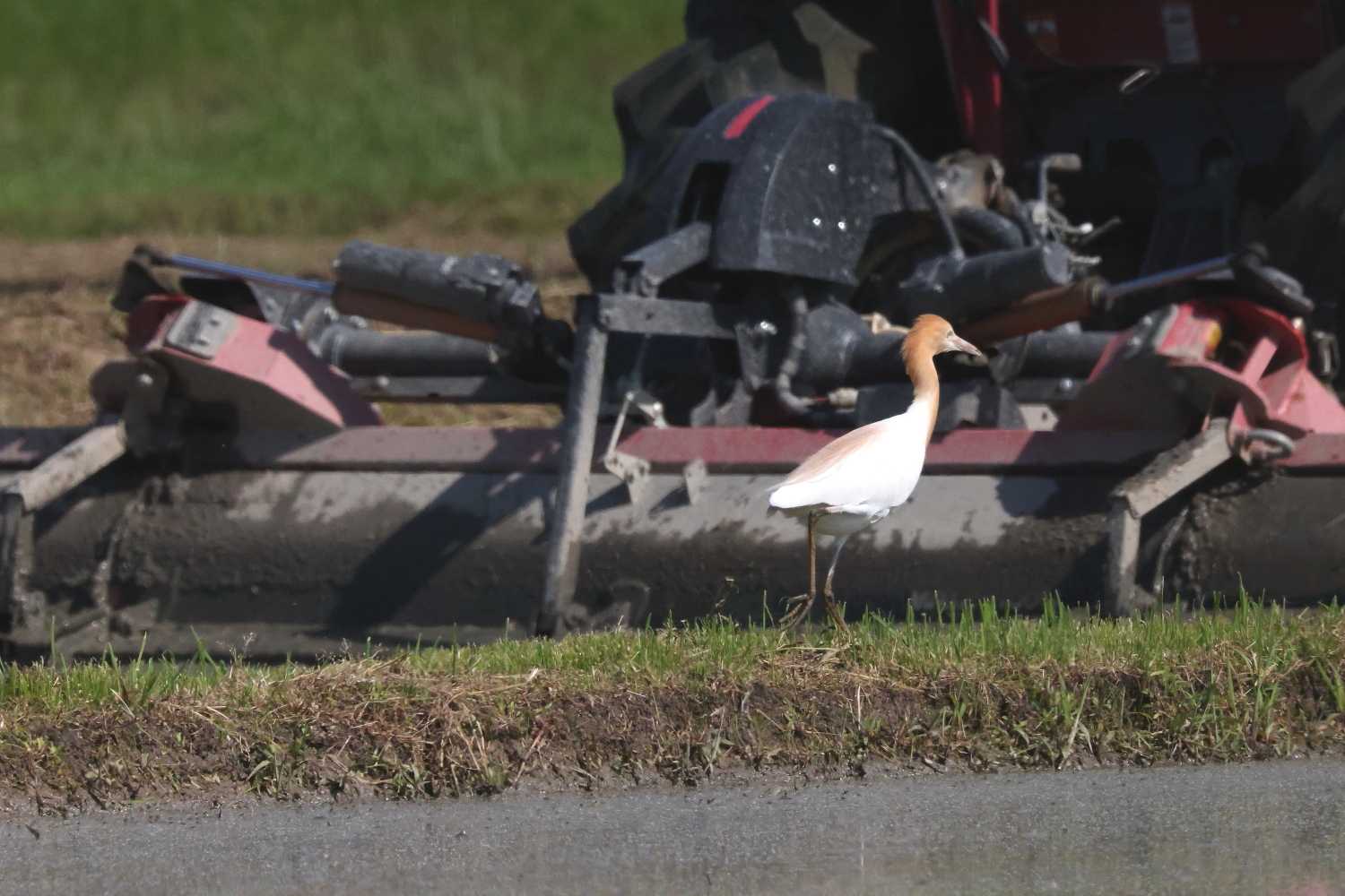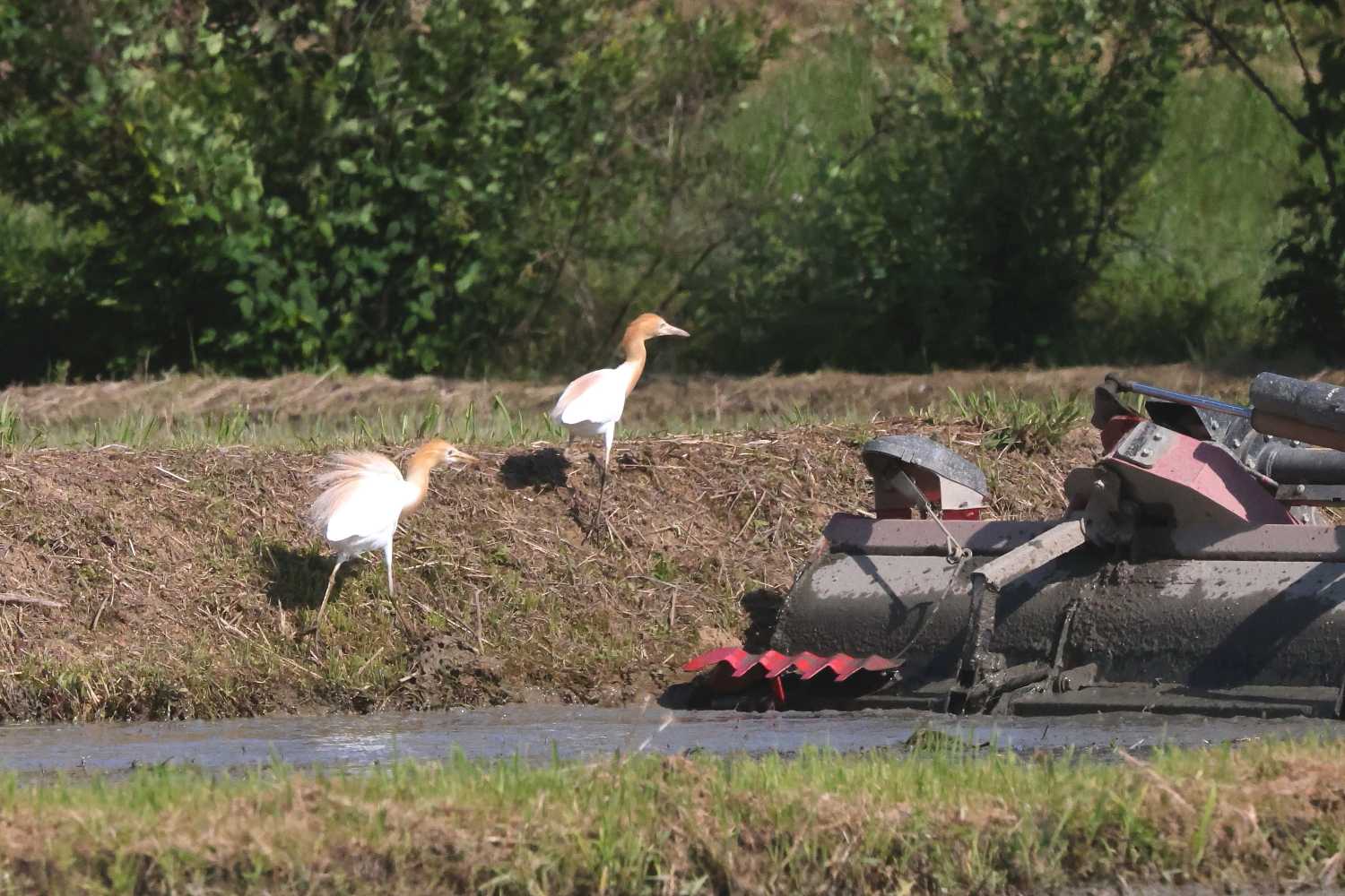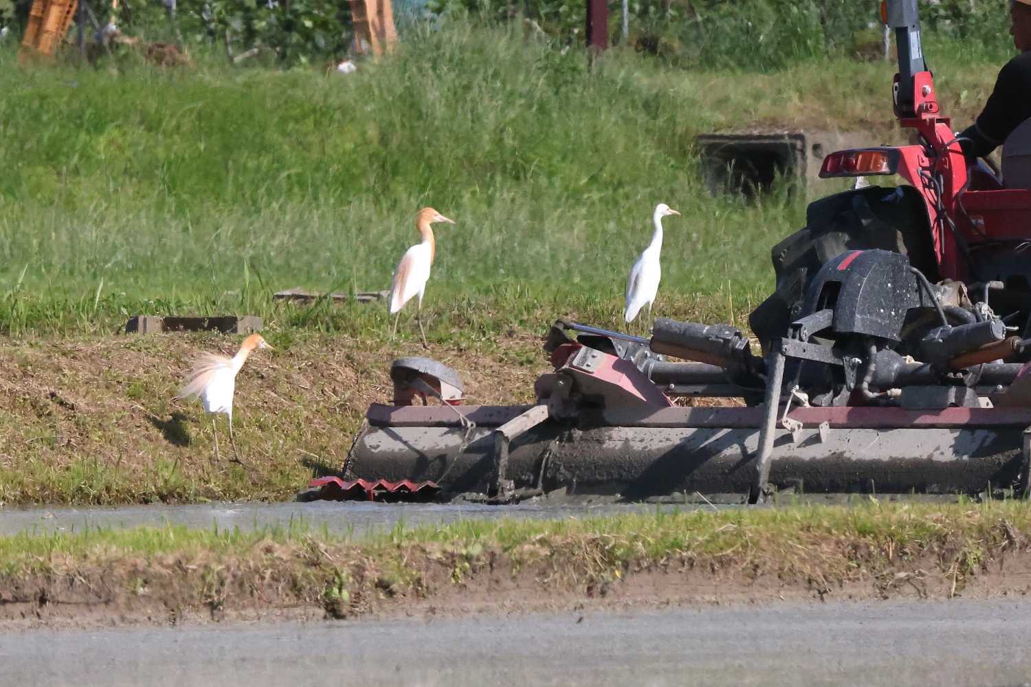☆河内の水田でトラクターの追いかけをしていた「アマサギ」
