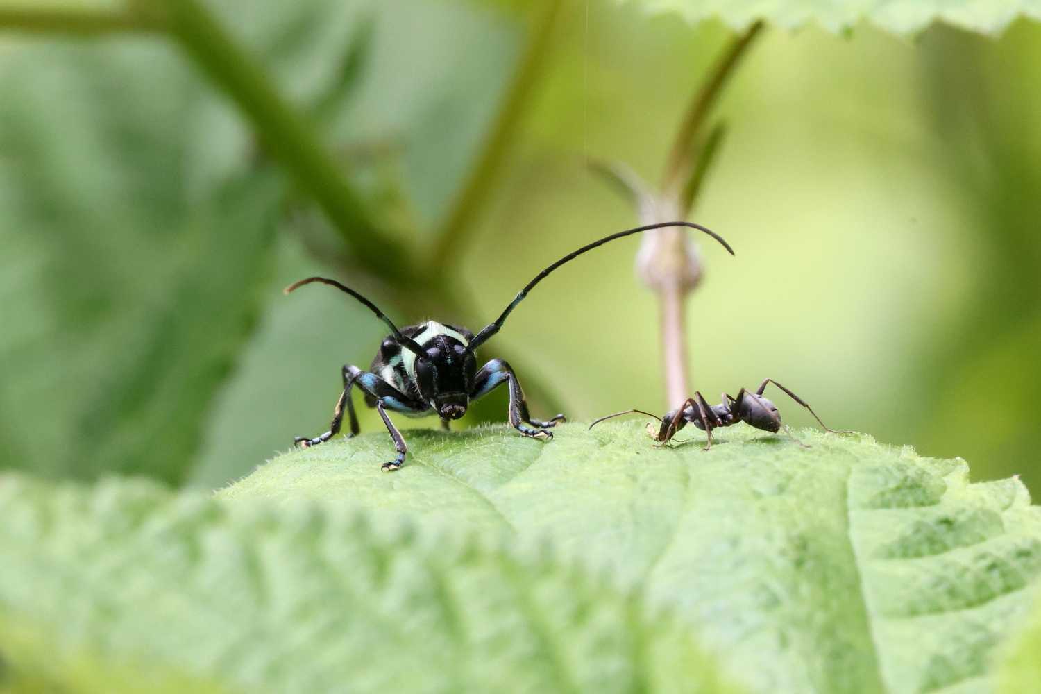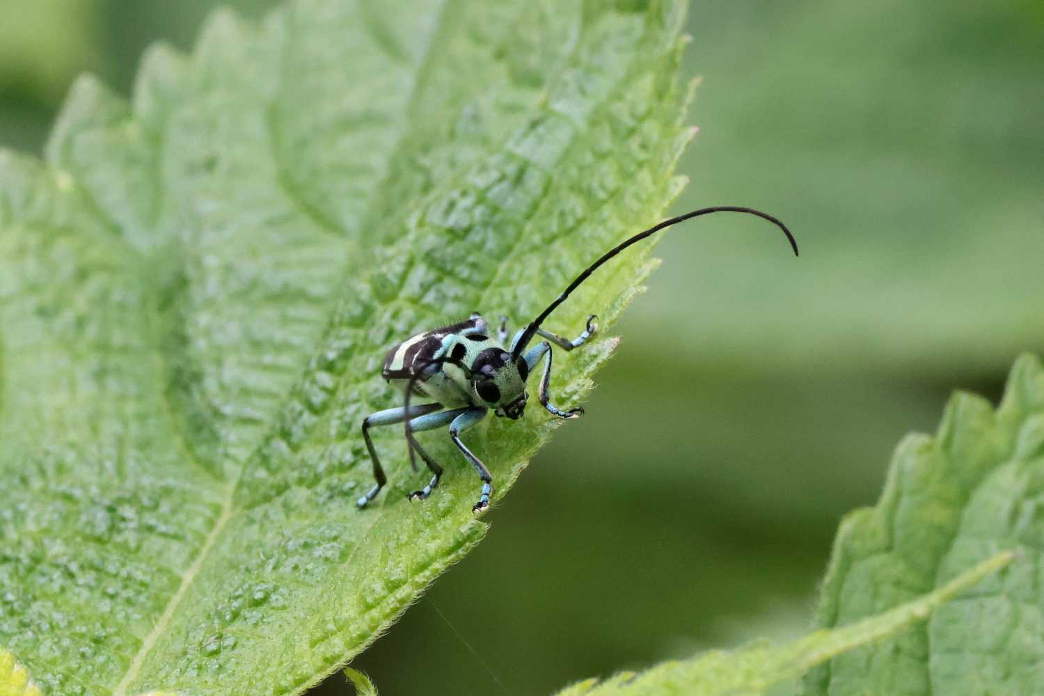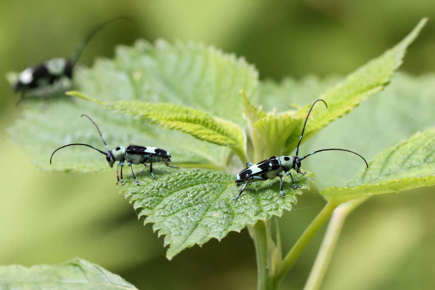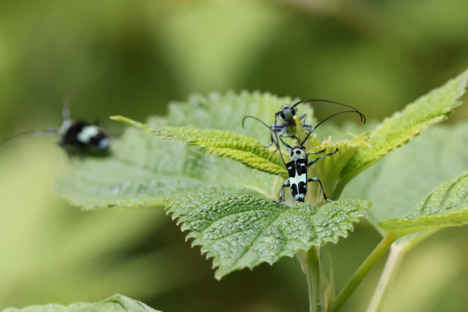 (本日更新2)河内長野市の神社前の川辺の草むらに、綺麗な「ラミーカミキリ」がたくさん生息していました(^-^)