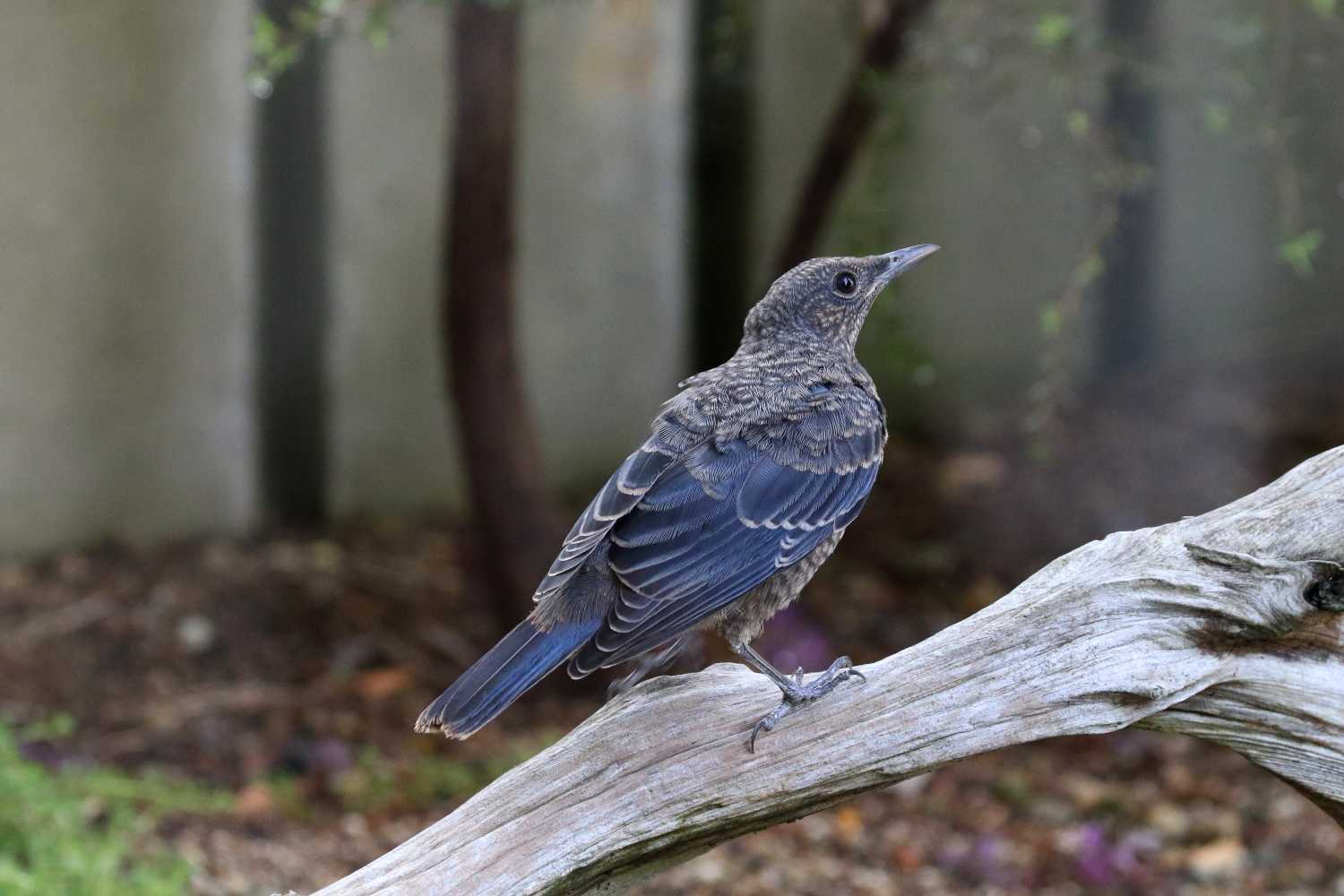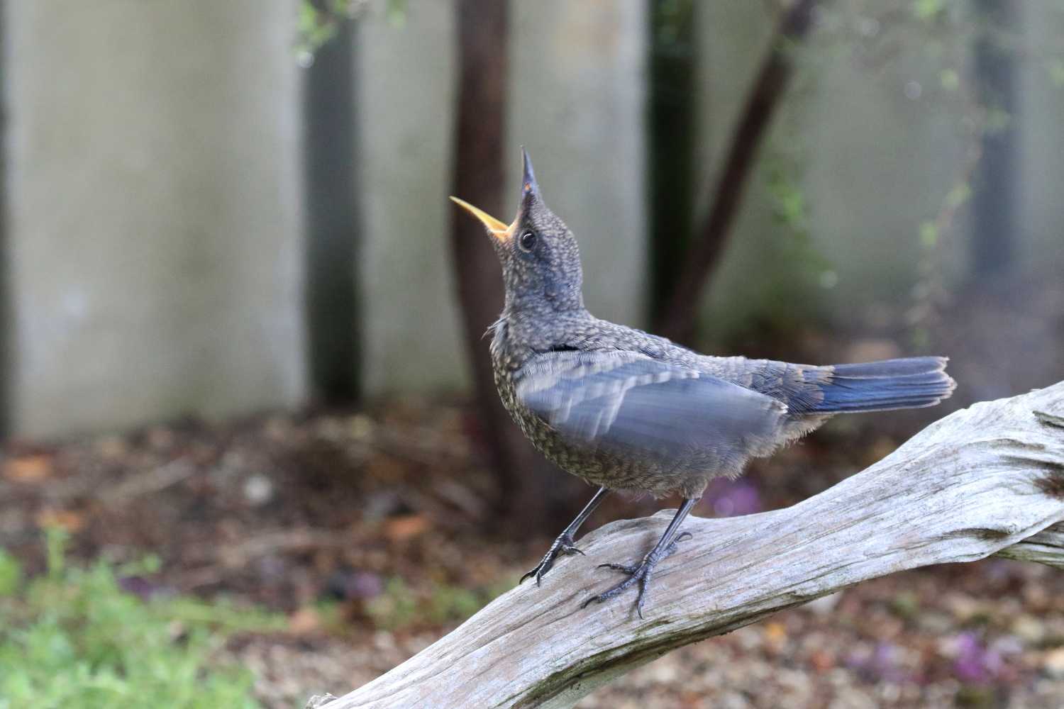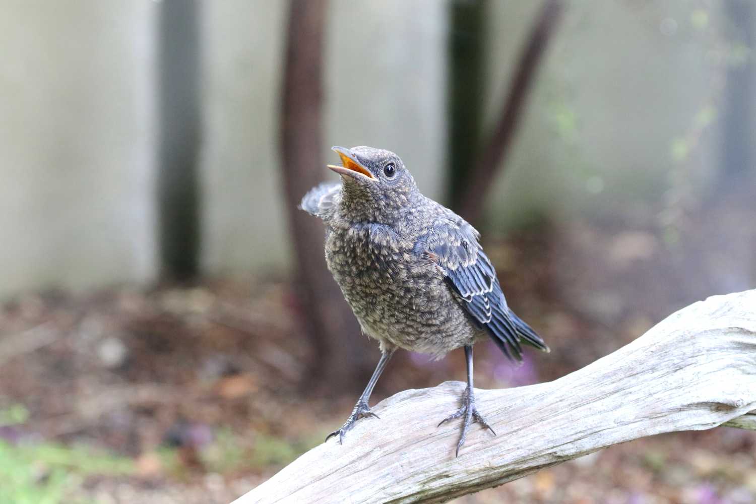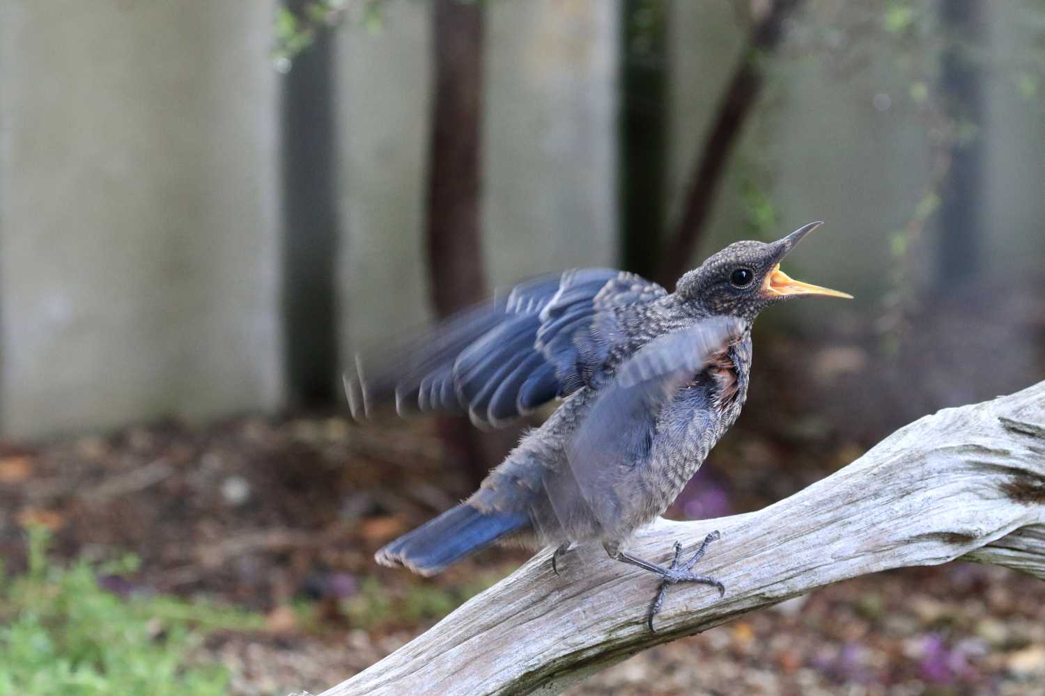 ☆お庭で親鳥からエサを貰うのを待ち構えている「イソヒヨドリ♂幼鳥」
