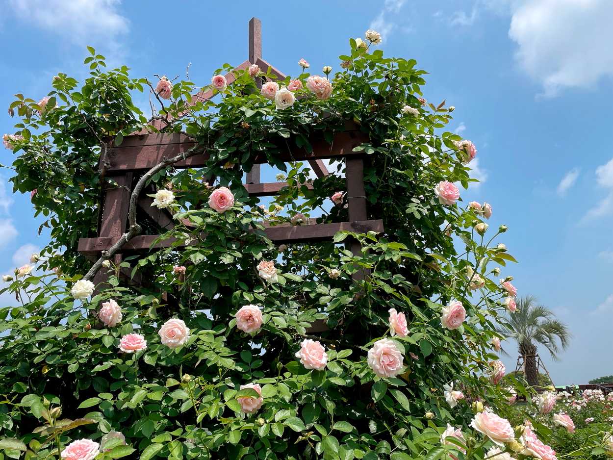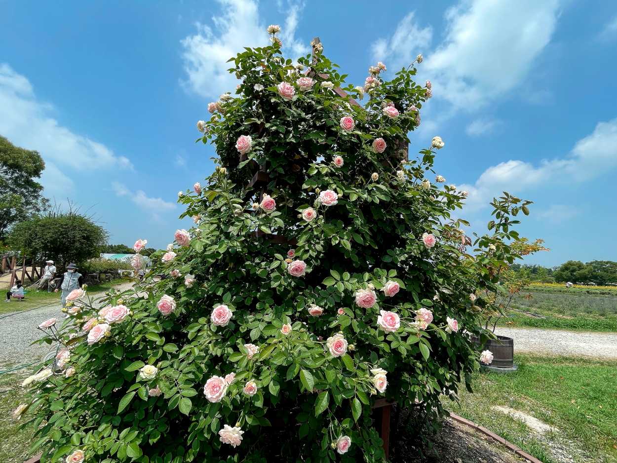 リサイクル公園で、大輪のつるバラの「ピエール・ドゥ・ロンサール」が、初夏に続いて、少しこぶりになって再度、綺麗に咲き始めていました(^-^)