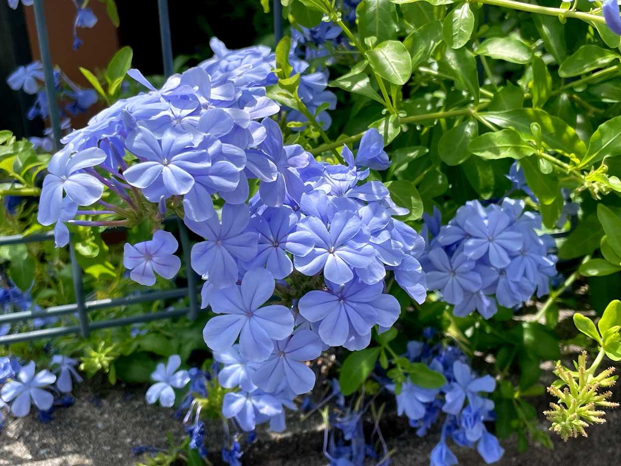 ☆近所の道路沿いで猛暑の中でも元気に咲いている「ルリマツリ」