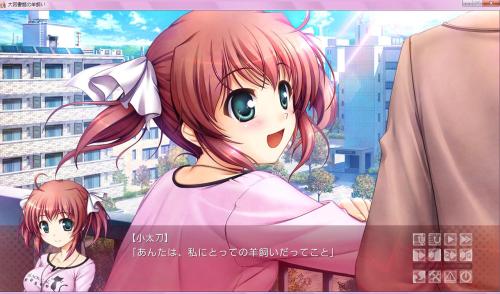 というわけで、大図書館の羊飼いをプレイ中です。今日でクリアまでこぎつけました。思っていたよりは早く終わった…かな。今更ですがネタバレ注意です。小太刀凪。羊飼い見習い。過去の筧と僅かに接点がある。その僅かな接点が、物語の鍵になっていきます。小太刀が羊飼い(見習い)だと見破った筧は羊飼いの秘密やらについて少しずつ触れていくようになります。羊飼いの秘密と、筧の未来視の能力には大きな繋がりがありました。小太刀の先生的存在の771(ナナイ)さん。彼は、幼い頃から筧に目をかけてきたようです。それは、筧に羊飼いとしての才能があるからだそうですが…そして、流れから羊飼い試験合格を目指すことになった筧は小太刀と共に、協力して課題をこなしていきます。試験の結果は…筧は合格、小太刀は不合格。羊飼いになる気がない筧が合格で羊飼いになりたい小太刀が不合格。納得のいかない結果になってしまいましたが小太刀は、自分が合格出来なかった理由のひとつについてなんとなく気付いてしまいます。理由のひとつとは、恋心。小太刀は、筧に惹かれていました。一方、筧も小太刀が放っておけない存在になっていました。羊飼いになるしか生きる方法がないと頑なに考えていた小太刀は全てを受け入れた筧と共にようやく人としての営みを始めるのでした。という話でした。これで終わりかと思ったのですが、そうではなかったです。各ヒロイン共、もうひとつのエンディングがありました。各ヒロイン(白崎・桜庭・御園・鈴木)のもうひとつのエンディングを迎えるとAUGUST作品恒例、各登場人物のエピローグ付きエンディングが流れます。なのでこちらがトゥルーエンドっぽいですね。てっきり小太刀ルートがトゥルーエンドかと思いました。といった感じの作品でした。あとはまぁアレだね、AUGUSTファン向けの遊びはけっこうありましたね。右の犬AUGUSTの過去作「夜明け前より瑠璃色な」の主人公・朝霧達也宅で飼われている犬。名前はアラビアータ。左の目つき悪い猫AUGUSTの過去作「FORTUNE ARTERIAL」のヒロイン・紅瀬桐葉につきまとっている猫?AUGUSTの前作「穢翼のユースティア」のオマージュ的な。真ん中の人、仁さんだろw(仁さん:AUGUSTの過去作「夜明け前より瑠璃色な」の登場人物)修智館学院の千堂瑛里華AUGUSTの過去作「FORTUNE ARTERIAL」のメインヒロイン。突撃副会長の異名を持つ。あとは、ヴィノレタも出てきましたね。名前だけ。…けっこう注意して見ていたけれど気付けたのはこのくらいでした。他にもあるのでしょうか。という感じで、大図書館の羊飼いを遊び終えました。評価は…星5つが最大のところ、星3.5個でしょうかね。おもしろいはおもしろいですが、ちょっと残念な感じです。いろいろ描写不足というか。一番気になったのは玉藻ルートにおける家族との関係とかですね。「地元では未だに藩主」という設定をあんまり生かし切れていない感があります。あとは…羊飼いの設定がちょっと弱い気がします。夜明けなにおけるロステクFAにおける吸血鬼・眷属じゃないですけれど、あれくらいの衝撃が欲しかったです。あとはまぁ、なんというか展開の先読みがかなり容易だった気がします。小太刀が羊飼いであることや過去の筧と何らかの関係があったこと、ナナイが筧の父であることとかは、すぐに読めました。もちっと意外性が欲しかったところです。でもま、相変わらずべっかんこう氏のキャラデザ好きだし純粋に学園モノのゲームだと思えばいい作品です。