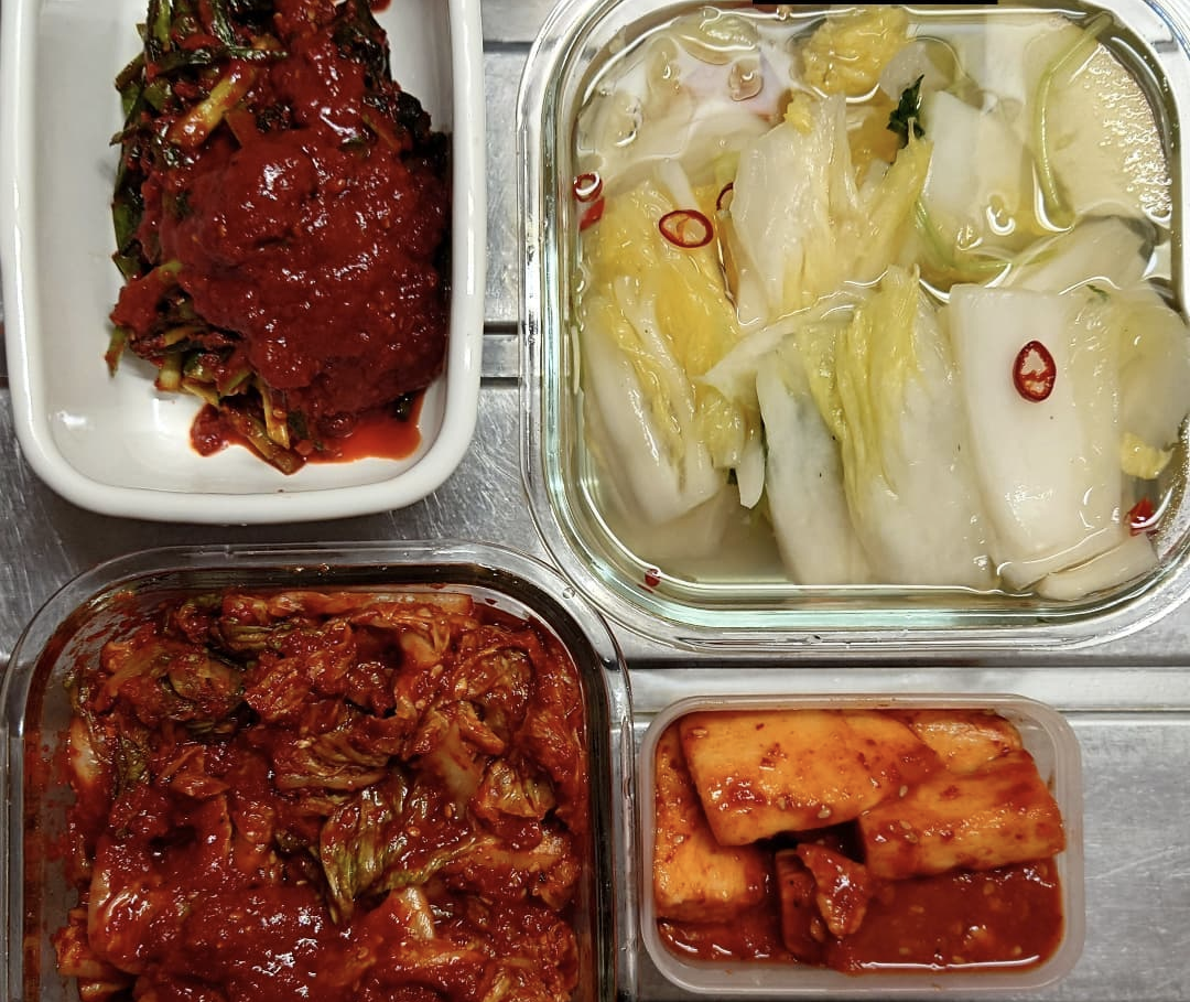ニラキムチ、水キムチ、山芋キムチ、白菜キムチです。