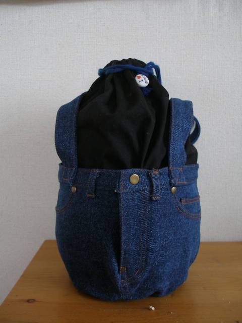ご近所さんと 近くの公園でお茶するときのポットにGパンはかせました。前のポケットも後ろのポケットもコインポケットも普通?に使えるように出来ています。ボタンもファスナーも同じように機能(何に使う?)しますが前ボタンとファスナーを開けないと お茶を始められないのはちょっと悪趣味かも