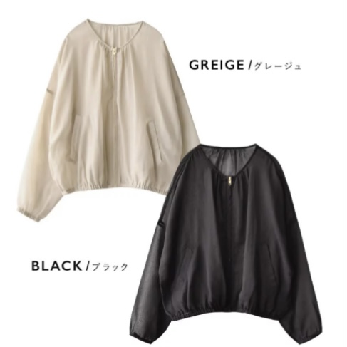 ブルゾン / カーディガン 感覚で着たい ライトアウター 。 レディース アウター ジャケット 上着 羽織り 長袖 シアー UV 冷房対策 薄手 大きいサイズ ゆったり 春 【メール便可22】◆zootie(ズーティー):シアーブルゾン[ノーカラー]