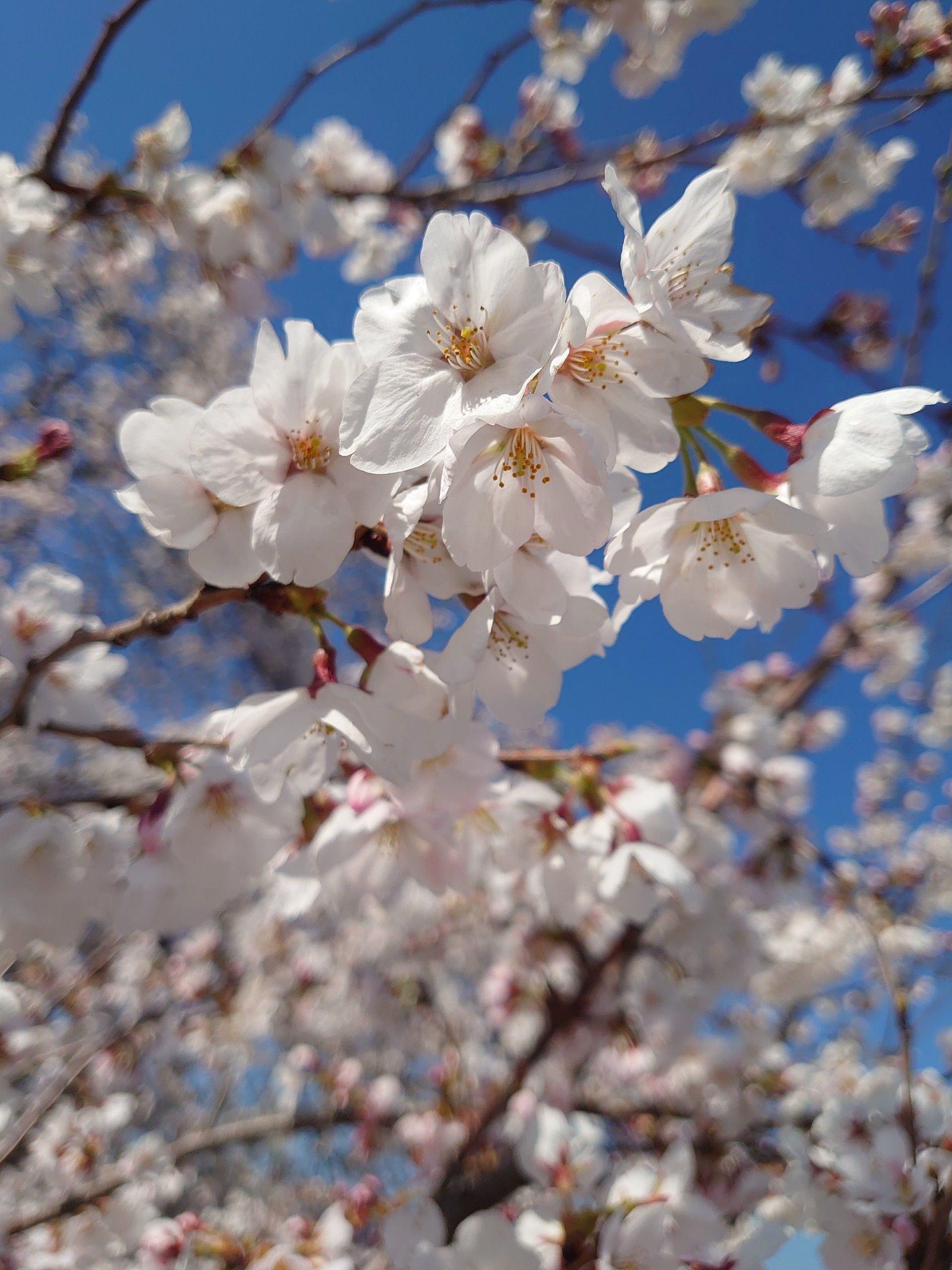 お天気も良く 暖かだったので 運動を兼ねて ちょっと歩いてきました。 桜、咲き始めたと思ったら あっという間に満開になっていました。 世の中は 新型コロナ肺炎で どうなるかわからない 混沌とした状況ですが 花はそんな事に関係なく 綺麗に咲いていました。 帰国したムスメと接触したということで 仕事は今休んでいます。 わたしは肺炎の持病があるので 今は本当に不要不急の外出は控えています。 人とも会わないし 気分も下がりがちになりますが 桜の花には 心癒やされますね。
