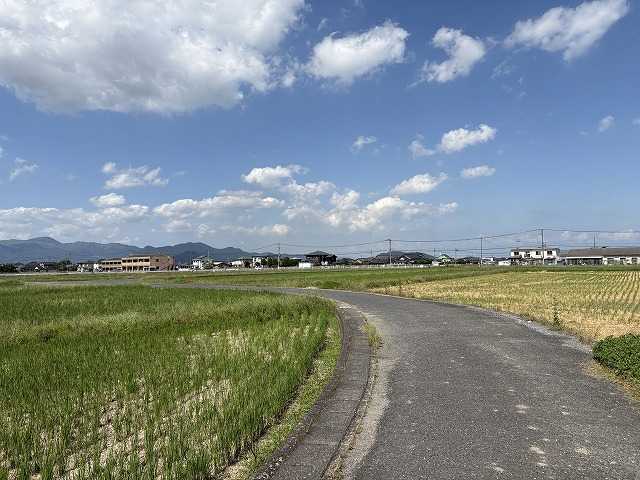 10:15 JR飯塚駅輪行で原田から飯塚へ。ニュースでやってた通り飯塚駅は工事中でした。筑豊は直方駅も田川伊田駅もカッコよかったから新しい飯塚駅がどんな駅舎になるのか楽しみです。そういえば田川後藤寺駅は行ってないな。そして以前も気になった駅前の薄いお店ここは残ってほしいなー!うすっ!笑是非、この薄さを売りにしてほしいです。それでは!今日は嘉麻市サイクリングに出発です!そしてラヴィクレールのグローブ、見つかって嬉しいわー!ちなみに「ラヴィクレール」とは「ライフ が クリア」で「輝く人生」って意味らしいです。GoogleのAIいわく。笑飯塚駅から西へ、遠賀川を上って今日は嘉麻市サイクリングです!いい天気に輝く人生!貸し切りの土手を爽快に走りますかー!I'm a man without conviction僕にはこれだっていう考えはないしI'm a man who doesn't know僕のことなんて誰も分かってくれないHow to sell a contradiction?このモヤモヤをどうしたらいいのかな?You come and go来たと思ったら行ってしまう You come and goいてほしいのに君は気まぐれだ嘉〜麻!嘉麻!嘉麻!嘉麻!嘉麻!カミリオーン!笑You come and goー!You come and goーー!!大声で歌いながら嘉麻市に入りました!歌わずにはいられませんよね!日記を書きながら歌詞を調べてみると「カーマは気まぐれ」の「カーマ」とはどうやら「カルマ」で「業」の意味らしいけどそれ以外は、人によって和訳が全然違っていて正解はわからず。他人の和訳を日記に載せるのはNGかなと思って自分で訳してみたら楽しかったです。カーマカマカマカマ!って当時は思わず笑ってしまったけどモヤる思春期を明るく代弁した曲だと知りました。遠賀川と山田川が合流するところ西側に渡って引き続き遠賀川を上ります。お、コイだ。橋の上でちょい休憩。さらに車が減ってますますサイクリングにピッタリな道です!今日は後半、峠を越える予定だけどどの山かなー!お!急にアートな建物!美術か建築の学校かと思ったら嘉麻市役所でした。それにしても、この風景に唐突だなー!笑ありました!嘉麻市最初の立ち寄りスポット!10:48 なつきちゃんファミリー遠賀川のカッパ伝説から生まれた旧稲築町のキャラクター「なつきちゃん」と両隣は「おかあさん」と「おとうさん」笑名前ないんかい!今まで見たカッパのキャラクターは若松区の「わかっぱ」中間市の「なかっぱ」久留米の「くるっぱ」似てますね。駅舎がカッパの田主丸には「かっぱつくん」と「ちかっぱちゃん」さらに田主丸には「かっぱペイ」もあるようです。笑橋の欄干にもなつきちゃん!こっちにも!お!ウ!魚がたくさんいるのかな。土手の道から何かを見つけたのでちょっと降りて寄ってみます。お!七福神!何かの記念碑のようですね。お墓とかではなかったので中に入ってみます。「鉱害復旧 土地改良」の記念碑とあります。鉱山が昭和48年に閉山して以降、鉱害の土壌からもとの田畑に戻すための計画についてなかなか協議が進まず長らく誹謗中傷等が続いて完成するのに平成9年までかかったそうです。なるほどー!1973年から1997年までかかったんですね。復旧工事を進めたい側もこれまで鉱害で苦しんだ側もそれはそれは苦労の連続だったでしょう。「悪者と言われて成せし業を 知るや稲穂は今日も波打つ 夢酔」難航を極めた協議と工事を乗り越えて明るい未来と地域の理解を七福神にかけた想いが伝わってきます。企業と被害者、お互いの信頼回復は時間だけが解決してくれるのでしょう。なかなか考えさせられる深い時間になりました。遠賀川沿いから国道211号線に出て南下。今度はピンのなつきちゃんに会いました。そしてまたすぐになつきちゃん。さらにここは「かっぱの駅」とのことだけど何の店なのかよくわかりませんでした。笑カッパはもうお腹いっぱいなので次の立ち寄りスポットに向かいます。そのまま国道を進むと「沖出古墳公園」の看板が出てきました。看板に従って脇道に入ると少し登り坂に。それにしても最近、古墳か炭鉱ばかりだなー!笑筑豊に限らず福岡はどこでも多いですよね。11:08 沖出古墳公園おー!きれいだなー!眺めが素晴らしいです!もっと近づきたいけど自転車の乗り入れは禁止でした。中では業者さんが手入れをされていたので遠くから見るだけにしておきます。だけど遠くから見て大正解!前方後円墳がきれいに見えました!見事な姿で美しい!とても大事にされているのが伝わってきました。沖出古墳、オススメです!では、そろそろお昼ごはんに嘉麻市グルメをいただこうと思います。11:12 筑豊製麺組合よもぎうどん今日のサイクリング飯は、沖出古墳からすぐ近くの「よもぎうどん」です!開店直後で一番乗りです。ぶははははは!やっぱりあったわー!10年近く前、家族キャンプの時に見つけて爆笑したおすぎの嘉麻市ポスター、どこかにあるはずと思ったらやっぱりありました!嘉麻市、攻めてるわー!笑これは懐かしい!ファミレス以前の時代、ドライブイン的な食堂によくありましたよね。来ました!「よ