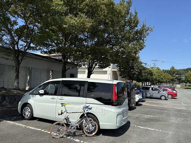 11:14 遠賀町総合運動公園今日もいい天気!今日のサイクリングは鞍手町。久しぶりに遠賀町総合運動公園からスタートします。あらら。汗バーエンドのミラーがフレームに当たるところ、ゴールドのラインがはがれてますね。このままビーっとはがれないように要注意です。近いうちに補修しとかないと。汗では、準備運動をして出発!まずは鞍手町に向かって南下!遠賀川沿いは何度も走ったので今日は運動公園の南側を西へ。見事な道だなー!実りの秋ですね!雲もちょっと秋っぽくなってきた!昨日からちょっとだけ涼しくなって今日の最低気温は22度。だけど最高気温は30度の予報。笑まだまだ夏は続きますねー。西川沿いを南下して途中から県道55号宮田遠賀線へ。鞍手町に入ったので忘れないうちに鞍手町のマンホールを撮影。おー!秋っぽい空!もっと涼しくならないかなー!まだツクツクボウシが鳴いています。県道55号線沿いにある「古月横穴」という国指定史跡に立ち寄ります。事前にGoogleマップで眺めた時は自転車でどこまで近づけるか分からなかったけどとりあえず行ってみます。案内看板から住宅の脇を登ります。なかなか急なので自転車は押して入ります。急坂を登ると今度は下り。しかも階段!笑仕方ない、担ぐか!11:44 古月横穴へー!こうなってるのかー!きれいにされてますねー。中まで見てみたいけど遺跡とはいえお墓と聞くとやっぱり腰が引けるのでここから拝んでおきます。資料によると遠賀川沿いのこの辺りはずっと海だったようでこのお墓からの眺めも良かったでしょうね。なーむー。さあ、次へ行きますか!まてよ、ここから降りても道路にはつながってないかも。汗急がば廻れじゃまた担ぎますか!横穴を見た後は西川を渡って東へ。次は鞍手町役場に向かいます。おー!いい空だなー!だけど上ばっかり見てると足元の草にバシバシぶつかります。汗お!あれかな!12:05 鞍手町役場カッコいい建物ですねー!ちょっと待てよ。「鞍手」って「サドルハンドル」ってこと!?笑せっかくなので一周してみるといちいちカッコいいです!左のは筋トレ用の階段?笑裏の駐車場からの眺め。まるで航空母艦!ホワイトベース!ビッグサイト!歴史博物館からのスロープ。ジグザグのこれは何!?法面ベンチ?笑とまあ、せっかく来たので廻ってみました。鞍手町のホームページによると去年完成したばかりのようですね。そりゃあピカピカのはずだ!それではまた県道55号線に戻ってさらに南下します。お!筑豊と言えば麻生さん!なんだかんだ握っていらっしゃるはず!再び県道55号線に出ました。この道は旧「国鉄室木線」の廃線跡で以前、南から遠賀川駅まで北上しました。今日はこの八尋から終点の室木に向かって南下します。だけど道が狭く車が多いので隣の農道にエスケープ。なんと素晴らしい道でしょう!と、思ったらここから先は砂利道!しかもこの先は工事中らしく結局、元来た場所まで引き返しました。汗そんなわけで狭い室木線跡を走って室木地区へ。高速道路をくぐってすぐの交差点。この辺りが旧国鉄室木線の室木駅だったようです。その交差点から見えました!今日のサイクリング飯はココです!楽しみだなー!つづく