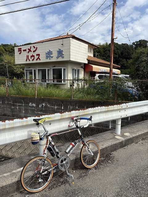 12:38 ラーメンハウス 味良今日のお目当て、鞍手町グルメの「ラーメンハウス 味良」に到着。ちょうどお昼なので外にも数人待ちがいますね。名前を書いて10分くらいで入店。メニューが多いなー!こないだの「ダーメン」みたい!それでもメニュー見る前から決めてました!「インドみそカツラーメン」!全然、味の予想がつきません!笑だけどいい香り!あ!お!こんな感じね!懐かしい家庭的なカレーの香りにあっさり落ち着く味噌がめちゃくちゃ美味い!全っ然、インドじゃないけど!笑ずっと飲めるわー!さっそくカツを一枚。麺に揚げ物は北九州圏の文化ですよね。ああー!カレーが染みたカツが予想以上に美味いー!そして肝心の麺!これまた予想外の太ちぢれ麺!腰のあるぷりぷり麺がカレーに絡んで最高です!!やっぱり味噌ラーメンはこうでなくちゃ!カレー!麺!カツ!麺!あー!うまくて忙しいー!!笑店員さんも元気でよかったし他のメニューも気になるしここもまた来たい店だなー!ごっつぉーさんでした!今の「ラーメンハウス味良」からすぐ近くに気になる鞍手町グルメがもう一軒。「うどん屋 仁」ここもまた個性的なお店みたいなので今からすでに次のルートを検討中です。笑「うどん屋 仁」の交差点から東へ国道475号線を直方方面に向かいます。今から登り、頑張ります!あ、新幹線だ!いざ!インドみそカツパワーでヒルクライム!ヨーガ・ファイヤー!笑途中、栗がたくさん落ちててここでも小さい秋を発見。九州だからのどかな風景だけど北海道だったら熊に襲われるかも。汗今年はクマ多すぎて怖いですよね。意外と高い所まで来ました。ヤーッホーー!名も無き峠を越えて直方市へ。今日は直方の市街地には向かわずに峠を下りたらシンプルに遠賀川沿いに戻ります。右に「新池」!左は「牟田池」!この辺りは池が多くて「昔、海だった」って感じですね。さっきの古月横穴にあった解説によればこの一帯は「古遠賀潟」という湾だったそうです。筑豊本線に当たった所で線路沿いに北上。レトロな筑前植木駅!ここから輪行で帰ったことがあるのでこれで今まで走った道とつながりました。ここから先は遠賀川沿いを戻るだけ。この辺りはまだ河川敷に降りれないんだっけな?ありました!「遠賀川サイクリングロード」!高速を越えた先に入り口がありました。サイクリングロードは路面はきれいだし人がいなくて貸し切り状態!たまにバッタやトンボと並走するくらい。カマキリって必ず道の真ん中を横断してますよね。直方市を越えて再び鞍手町へ。土手の上を走る車を眺めながら走ります。続いて中間市に入って遠賀川の中州の中島。ここはイノシシ注意と書いてあるのでついつい急いでしまいます!汗中島のきれいなサイクリングロードをサーッと通過!歴史ある筑豊本線の鉄橋をくぐります!最後くらいはスピードを上げてインドみそカツラーメンのカロリーを消費しないと!見事な中間大橋!でも、あれ何だ?うおー!すげー!!逆さハシゴ車?笑そんな作業車があるんですねー!遠賀町に入るとそろそろゴール。最後はちょっと風が出てキツかったけどサイクリングロードは気分最高でした!14:32 遠賀町総合運動公園今日も楽しかったなー!距離は短くても無心になれる時間は大切です。最近特に仕事が忙しいので。笑【本日のサイクリング】走行距離:34.5km獲得標高:156m鞍手町は「うどん屋 仁」にも行きたいので今度は宗像から走って直方に抜けてみようかな。さて、帰りはスーパーに寄ってお買い物。今日は久しぶりにみんな大好き豚足!部活で頑張る次男にも自転車遊びのパパにもママのコラーゲン補給にもピッタリです!ビール飲むためにサイクリングしています!笑