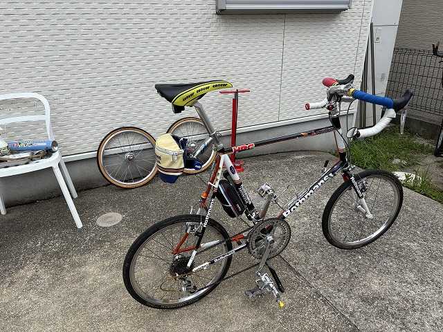 出来た!まぶしい!我ながら惚れ惚れします!BRUNOを買って15年BRUNOをいじりはじめて5年あれこれ試しながらようやく完成しました!オリジナル塗装に手組みホイールにサンツアー化、脱シマノも果たして、もういじる所はありません。自画自賛の極み、理想の姿になりました。笑気が済んだので備忘録として総まとめです。■フレーム ●BRUNO ミニベロ20ロード2011年式 フレーム クロモリ鋼 レイノルズ520 センター×トップ510mm フォーク ハイテン鋼■ハンドルまわり ●ハンドル NITTO M186STI●ステム NITTO N65 Crystal Fellow●ブレーキレバー TRP RRL-SR ブラウン●ブレーキレバーフード メーカー不明コピー品 ブラック●バーテープ OGKカブト コルクタイプBT-01 ブルー・レッド・ホワイト YONEX グリップエンド●バーエンドキャップ ODI プッシュインプラグ●ヘッドパーツ TANGE SEIKI FL-250C DIACOMPE アルミスペーサー●ベル Knog Oi Luxe SMALL●シフター(リア) microSHIFT SL-T10●シフトケーブル NISSEN インナーSP31 NISSEN ステンレスアウター●アウターエンドキャップ JAGWIRE フーデッドエンドキャップ●ライト GENTOS SNM-L143D●ライトホルダー OLIGHT FB-1●時計 ADEPT アークロック●ステム引き上げボルト穴カバー KITACO キャップボルトカバーM8●ミラー CAT EYE BM-455年間のカスタム歴の中でミラーが一番紆余曲折しました。汗■ブレーキ ●カンチブレーキ SUNTOUR XC-LTD CT-XL00 DIXNA クロスカンティブレーキシュー BBB ウルトラストップ●ブレーキケーブル NISSEN インナー SP31 NISSEN ステンレスアウター DIACOMPE ショートフレキシー●チドリ(フロント) SUNTOUR パワーハンガーOP-PH00●チドリ(リア) SUNTOUR XC-LTD付属品●アクセサリー メーカー不明 中通しウキ■ホイール ●フロントハブ SUNXCD ラージフランジハブ SXL102 32H●リアハブ SUNXCD ラージフランジハブ SXL132 32H シマノカセットタイプ●リム VELOCITY A23ポリッシュMSW ETRTO:406 32H●スポーク Hoshi Spoke スターブライト 14番 プレーン●ニップル Hoshi Spoke 真鍮●タイヤ SCHWALBE ONE 20×1.10 クラシックスキン●チューブ SCHWALBE 6SV 20×1.10-1.50●リムテープ SCHWALBE FB18 406●クイックリリース TIOGA オフセットクイックリリース●バルブ小物 RUNWELL バルブリング RUNWELL リムリング●ハブ毛 三優商会 デラックスカラーハブ毛■ドライブトレイン ●ボトムブラケット TOKEN TK8675CM(ISO)●クランク&チェーンリング SUGINO マイティビクトリー 165mm 43×52 SUGINO フィキシングボルト クロモリ 15mm●チェーン KMC X10EL●フロントディレイラー SUNTOUR シュパーブ・プロ FD-SB00-SSB microSHIFT 直付FD取付バンド28.6●シフター(フロント) microSHIFT BS-T10●アウターストッパー SUNTOUR ケーブルホルダーOS-410 左R5531 0212のみ●BB下ケーブルガイド Campagnolo PL6-RE ■ペダル ●ペダル MKS シュプリーム・ロード●トゥグリップ MKS トゥクリップスチール L●トゥストラップ MKS FIT-α SPIRITS ホワイト●ストラップエンド MKS 品名不明 イエロー●リアディレイラー SUNTOUR シュパーブ・プロ RD-SB00-SSB メーカー不明 シールドベアリングプーリー●スプロケット(9速) microSHIFT CS-H092 11-28t ●リアリフレクター KiLEY コインリフレクター LM-019■サドルまわり ●サドル SELLE SANMARCO CONCOR RACING ワールドツアー(オランダ) ヴァカンソレイユモデル●シートピラー NITTO S65 Crystal Ferrow 26.8mm径 300mm長●シートクランプ THOMSON シートポストカラー 28.6●リアライト OLIGHT RN120C●サドルバッグ HONDA ロスマンズウエストポーチ RIXEN&KAUL フロントアタッチメント BASIL アダプタープレート NITTO クランプオンUI-2 120mm GIZA PRODUCTS シートポストスペーサー1.4mm NITTO ハンドルシム 0.3mm HL DR-AL-10 BRUNO純正ハンドル(一部使用) ODI プッシュインプラグ●御守り 鳩森八幡神社 交通安全自転車守■その他 ●スタンド MASSLOAD ダブルレッグセンタースタンド SURLY キックスタンドプレート●ツールボトル GIZA PRODUCTS ライドポッド●携帯ツール TOPEAK MINI-20●ロック NOGUCHI POPEYE PM-180 ミニロック ●ボトルケージ MINOURA DURA-CAGE×2●リアボトルケージ穴加工 LOBTEX ちょっとナッターM5●ポンプ Panaracer ミニフロアポンプ BMP-N21AGF2-Sいじり始めたらいつのまにか5年かかりましたがとっても楽しかったです!とりあえずこれでお披露目ブログが終わったのでドレスコードのサドルとハブ毛は元に戻します。笑さあ!お金を貯めて2台目の夢でもみますかねー!ブルホーンもプラホイールも倉庫で待ってるし。笑まだまだ つづく