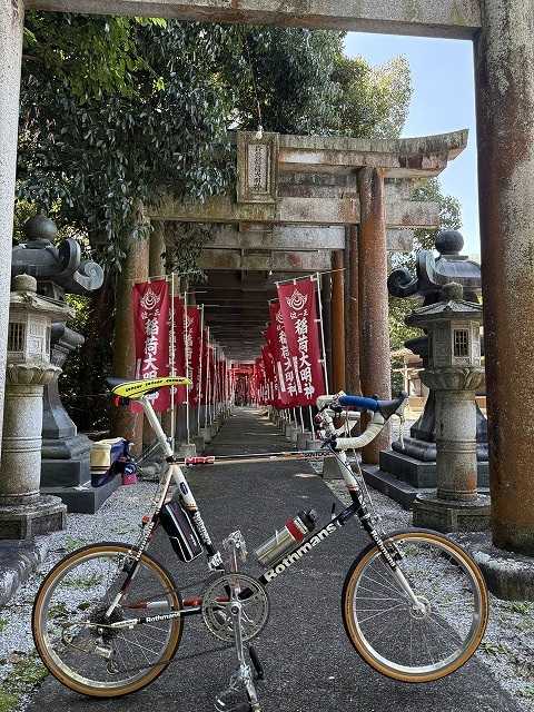 12:43 筑後広域公園柳川から矢部川沿いに北上して筑後市へ。ちょうど筑後船小屋駅に新幹線が入って来ました。時刻表によると「つばめ316号博多行」ですね。まずは、この筑後広域公園の中を少し走ってみます!今日の最高気温は35度の予報。多分、今が一番暑くて35度でしょう。汗どおりで誰もいません。笑自販機を見つけたのでアクエリアスを飲み干しました。公園の中に茶畑があったので見学。この茶葉でここで抹茶カフェとかやれば外国人で賑わうかもですよ。誰もいない公園の中を通り過ぎて筑後船小屋駅方面へ。あとで知ったけどもうちょっと西まで行けば九州初の公共BMXパークがあったみたいです。しかも次の週末には日本初開催となるアジアBMXフリースタイル選手権が開催とか。それは見ときたかったなー!外から見れる施設なのかはわからんけど。筑後船小屋駅から新幹線線路沿いに北上。かわいい羽犬のマンホールを発見!消火栓も羽犬ちゃん!筑後市の守護神ですね。13:05 恋木神社国道721号線に沿って北西へ。「恋木神社」に着きました。「筑後市 観光」で検索すると必ず出てくる筑後市が推すパワースポットです。「恋のくに筑後」!笑恋ネタで推しまくりですねー。中には入らないけど鳥居も灯籠もハートマークだそうです。笑と、インスタ映え狙いかと思ったら菅原道真公が都に残した妻子を生涯思い続けたためその御霊を慰めるために全国で唯一「恋命」を祀っているそうです。恋木の「木」は都の方角、東を指していて鎌倉時代の建立時から恋の神様なんだそうです。すごく由緒正しいLOVE神様でした!失礼しましたー!汗13:17 サザンクス筑後お次は恋木神社から北上して筑後市の市民ホール「サザンクス筑後」へ。以前、筑後市サイクリングした時に羽犬塚駅、羽犬塚小学校、山の井交差点の3箇所にある「羽犬の像」を巡ったけど今日はここにあるという残り1体の羽犬の像を探しにきました。正面玄関には無かったので駐車場側へ。ここには無さそうですね。もう一度玄関に戻って中庭みたいな場所。あれ?ここにもないなー。人間の像はありますけどねー。入り口の多目的広場、バス停脇、駐車場、事務所側・・・なんだか無い感じ。汗情報を間違ったかな?撤去されたとか?サザンクスの外に出て外周から探してみます。川沿いの遊歩道には素敵な像が並んでいました。川沿いはもう別の公園って感じですねー。羽犬の像はやっぱり無いのかな?え!あ!まさか!いたーー!そしてデカいーー!なんか怖いーー!笑13:25 市民の森公園 羽犬像4体めの羽犬の像をやっと発見!危なくあきらめて帰るところでした。これで4つコンプリートです。でもしかし、やっぱりハンソロの炭素冷凍だわー!笑大迫力かつ閉塞感、汗どうしてこう作ったのか謎!笑ひとり大笑いした後はそのまま川沿いに進んでJRの下をくぐって東側へ。13:33 六所宮民家の路地を進んでいくとありました!この神社の中にお目当てのスポットがあるはず。13:33 粟島神社あったー!!ほんとに小さな鳥居だー!!おもろ!!笑日本一小さな鳥居なのかと思って調べると熊本県にある粟嶋神社という似た名前の神社が日本一だそうです。じゃきっと日本で二番めに小さな鳥居かな。笑せっかくなのでこの鳥居をくぐってお参りしてみます!おお!いざとなると見るより小さい!汗誰もいないけど無事に出れるかな!?不審に見えないかな!?汗笑われてない!?合ってる?汗静かな境内でオッサンがひとりズリズリとミニ鳥居をほふく前進してくぐり抜け、無事にお参りを済ませることが出来ました。ちなみにこの粟島神社は、安産と婦人科系の治療に御利益があるそうです!笑よろしくお願いしますー!これで筑後市の立ち寄りスポットをクリアしたのであとは筑後市グルメを食べて帰るだけです。今日は観光色が強くて旅行って感じです。笑お!羽犬塚小学校前の羽犬の像!こっちは躍動感あって好きです。笑何と読む?と思ったら「かんばらばら」!笑っちゃいけないけど面白い響きですよね。笑13:51 てうち庵 筑後店そして筑後のサイクリング飯はここ!さっきの柳川同様に筑後もサイクリングは来たことあるけど今までグルメは未食でした。で、今日はここ「てうち庵」へ。「てぬきうどんのまるしん」と悩んだけどこの「あなごごはん」でチョイスしました。さっきの柳川の「うなむす」と食べ比べです!うおー!予想を超えて立派なせいろ蒸しで来ました!刻んだ穴子に錦糸卵!テンション上がりますねー!ああー!美味しいー!甘さ控えめで鰻よりもあっさり!想像以上に上品なせいろ蒸しです!実は穴子は少ないけどたくさん入っているような旨みが広がります!これで440円ですよ!鰻の10分の1の値段でこの幸福感です!笑続いて来ましたカレーうどん!これまた予想を嬉しく裏切るスパイシーな香り!うま!うどん屋さんなので出汁系の甘いカレーかと思いきや次から次に違うスパイスの香りが来てこれはハマる旨さです!粘度高めのスパイスが効いたカレーに太く平たい麺がでろでろに絡んで口いっぱいに幸せ