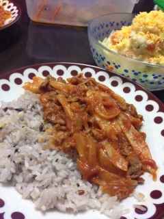 え?今日8月2日の晩やけど、昨日の晩御飯載せるの?てツッコミは置いといてね。ハッシュドビーフとおから入りポテトサラダを作りました。ハッシュドビーフてルーとか赤ワインとか使うイメージ。普段はルーとかで作るけど、今回はルーもなく、赤ワインは使ったことないから今回は簡単に作ってみた。さらに牛肉を減らした分、ゴボウ入れてカサ増し♪ルー?は案外美味しく出来たかと♪ゴボウも案外合うもんだねぇ…。カロリーを減らしたハッシュドビーフ!料理名:簡単!時短!なハッシュドビーフ!作者:まゆるるん♪■材料(2人分)牛肉 / 100gゴボウ / 100g玉ねぎ / 100g小麦粉 / 大さじ1カットトマト缶 / 1/2缶分水 / 100ccケチャップ / 大さじ2ウスターソース / 大さじ2ローリエ / 1枚塩胡椒 / ■レシピを考えた人のコメント牛肉を減らしてその分ゴボウを入れています。便秘解消にも◎ちなみに今回は五穀米ですが、普通のライスでも美味しく頂けます。詳細を楽天レシピで見る━━━━━━━━━━━━━━━━━━…↓↓ ポイントが貯まるレシピ サイト ↓↓>>最短約 30 秒!▼無料▼会員登録<<━━━━━━━━━━━━━━━━━━…今度はゴボウ以外に冷蔵庫の余り野菜で試してみよう♪あ、おから入りポテトサラダはお酢を多めに入れてる分、マヨネーズは少なめに入れました!マヨネーズはカロリーハーフで(^^)写真の撮り方下手ですが本日2日の晩御飯は旦那さんリクエストのオムライスとアスパラベーコンのスープにサラダ〜。写真には写ってないけど、あとセロリとコーンのガーリック炒めもありました。オムライスはヘタレだからわたし今まで卵で包んだことない(笑)ライスはフライパンで玉ねぎや具と最後にお米炒めてから炊飯してます。というのは、フライパンで作るとどうしてもライスがべちゃべちゃになっちゃって作るの下手くそなんです(笑)半熟のオムレツの方が失敗しないようです(笑)味しっかりつけたのでこのままでも美味しいけど、ケチャップのせても美味しかった♡あ、楽天のお買い物マラソン始まった〜!さぁ、買いものしなきゃ!!!