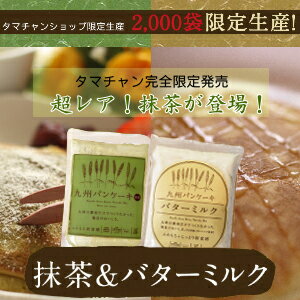 ダイヤ10倍店舗さんだねー♪ でもドケチなので タマチャンのパンケーキは クーポンあるときしか買わない様にしてる(笑) 【送料無料】ふわもちの新食感!九州パンケーキミックス<br>バターミルクと抹茶セット<br>希少な九州産バターミルクと宮崎産抹茶使用の贅沢なパンケーキミックスです