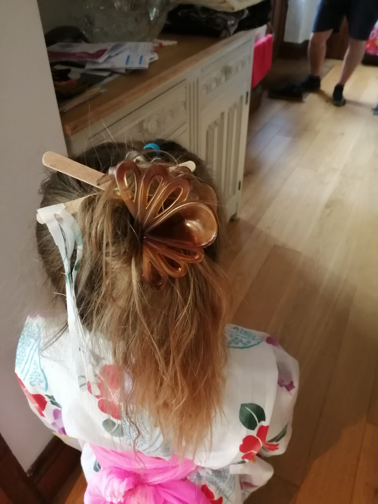 今日は春にここに来る予定だった母から大きな荷物が届いた。タイに住んでいた頃から今もずっと年に何度も大きなダンボールいっぱいに故郷のものを詰めて送ってくれる。はたして、自分の娘が遠方に行ってしまった時にこんなに沢山のものを送り続ける事はできるのだろうか。。。自信がない(T . T)そんなことを十何年もやり続けてくれるなんて。。。今回は娘にと浴衣も入っていた。サイズも裾や袖をつめて。ちょうどだった。丈も動きやすく、下駄も裏は靴の裏のようになっていて歩きやすい。嬉しくて義母に見せに行った娘。義母にアイスクリームのスティックでかんざしを作ってもらっていた。笑この後紙のヒラヒラを付けてよりリアルになっていた。夏祭りはここではないが、学校で何か催し物があったら着て行けるね。娘は家で一日中着てたけど(^◇^;)盆踊りをYouTubeで見せたので自分なりに練習している。笑さて、私はと言えば大好物の食材がたっぷり。しばらくウハウハ。外に出られるようになったら何かお返しショッピングへ行かないとね。。ではまた明日ーーー!!にほんブログ村