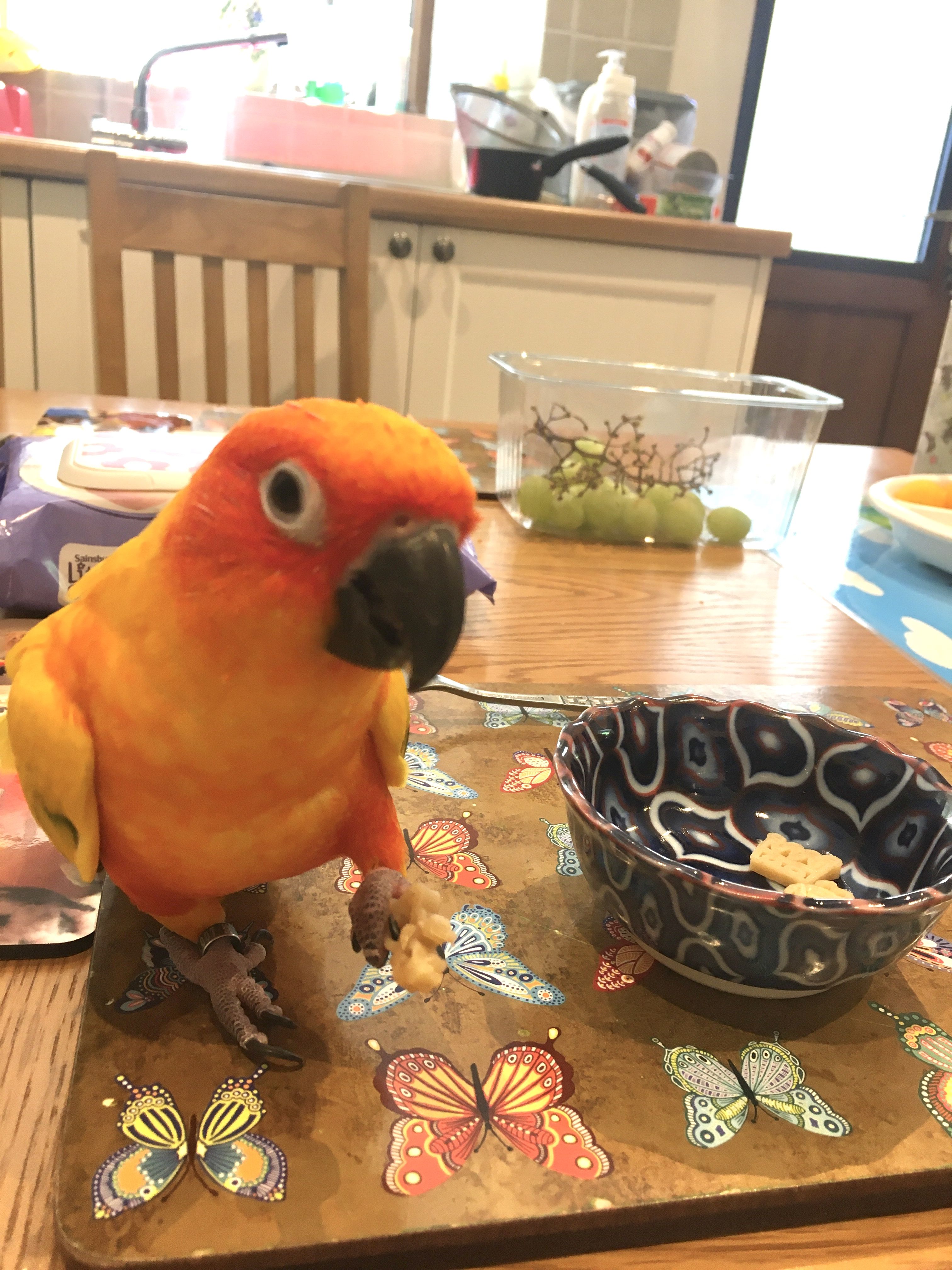 最近登場していなかったね。。バジル。相変わらず元気に雄叫びあげてます。笑何を食べてるのかというと。。。長女が食べていたペッパーピッグの形のパスタ。。少し。。好きすぎて必死に食べている。後でクチバシに付いた残りカスを私の服に擦り付けてしっかりとキレイにする。(^◇^;)私や娘はこれが普通だけど。。。夫は家にいる時間が多くなったロックダウンの日からバジルの日中の雄叫びを聴いてそのうるささに驚き、そしてそれは言って欲しくなかったが「バジルの雄叫びがストレスになる」と、言い出した。。。バジルがが雄叫びを始めたら夫は「オーブンに入れて焼くよ!」と、バジルに言っていた。。。うるさいけどそれがバジルの仕事。早く毎日出勤するようになれば日中のそれを聞かずに済むんだけど。。言われれてみれば今までなかったもんね。。こんなに毎日日中のバジルを見るの。。雄叫びモードの時、夫が家にいたら私が頭に乗せて家事をすることにしたら幾分マシになった。。バジルよ。。どうか丸焼きにされないようになんとか良い子でいておくれ。。。いちを念のために。。夫は本気で言ってるわけじゃありません。笑でもそれだけイラっとするみたいです。。バジル、頑張れ。。ではまた明日ーーー!!【P-works】フリーカップP2-579/コガネメキシコインコ楽天で購入にほんブログ村