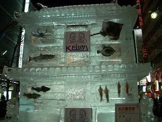 夜は、ススキノで、ジンギスカンを食べました。 最近は、生ラムにたれを付けて食べるというのが、流行だそうです。 ひげのうし、というところへ行きました。 とても癖がなくて、美味しかったです。 夢中で食べていたので、写真はありません。 近くにあったら又いくのになあ。 ちなみに、昨日の夜は、大通りの屋台で、味噌ラーメン。 隣の屋台が松尾ジンギスカンで、いつのまにか大行列で買い損なって残念だった。 極、という、ところでした。 作っている、お兄さんが一人は、ドラゴンボールのスーパーサイヤ人になったときのゴクウ風(つまり金髪で、ロックバンド風につんつんに天を向いて固めてあった)もう一人のスキンヘッド頭は、額にくりりん風にマジックで、6つ点がかいてありました。 いつもその頭なのか、雪祭り限定のお遊びなのかは、聞かなかったので、わかりませんが。 ラーメンそのものは、美味しかったです。あっさりめでした。 ホッケ節で、出しをとっているようでした。 すすきのにも、氷の像がいっぱい飾ってありました。 今回イベント会場では、よくアイスバーを見ました。 夜は、友達がホテルに勤め帰りによってくれたので、ふたりで、バーで、ちょっとおしゃべり。 これは、雪祭り限定カクテル。かわいいけど、やっぱり、お味はいまいちでした。 友達にネットショップが、日々進化していると、ほめてもらいました 彼女は、もともと東京で、それ系の仕事をしてた人で、友達になったので、ほめてもらってうれしかった。 継続は力也、ですね。がんばろう。上海に行くそうなので、次は上海で会いましょうと、別れました。