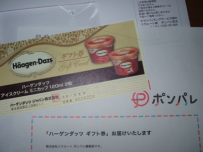 ポンパレは株式会社リクルートが運営する割引チケット共同購入サイトです先月登録して、購入したのがハーゲンダッツアイスクリームミニカップ2個のギフト券です。価格はなんと送料込み100円でした 最後までお付き合い頂いてありがとうございます。ランキングに参加しています よろしかったら下のバナーのクリックをお願いします にほんブログ村