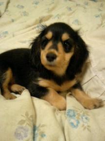ず~っとず~っとなやんだんですが来月、ブラックタンの女の子を家族に迎える事になりました (*^^)//。・:*:・°'★,。・:*:♪・°'☆ パチパチダックスちゃん大好きで、ずぅ~っと飼いたかったのですが、来月やっと夢がかなうんです~♪♪友達の友達(遠い・・)のお家にロングの赤ちゃんがうまれたらしく、「ブラックタンの子とゴールドの子どっちかいらん?」って。。。。飼うなら、ブラックタンかなぁ~って思ってたけど 「どうしようかな・・・」 「ちゃんとかえるかなぁ・・」 「よく出かけるし・・・」 「今回はやめとこうかな・・・」 ほんとに色んなことかんがえました・・・・ でも、どんな子なのか気になったので写メを送ってもらう事に・・・ やぁ~ん、かわいいよ~o(^^o) (o^^o) (o^^)o キャアキャア♪ 一目でやっぱりブラックタンの子に惚れてしまいました写メ見たら駄目ですねぇ~、どうしても欲しくなってしまいました今からすごく楽しみで、早く会いたくて仕方ないです まだ、会ってもいないのに名前考えたりしてしまいます なかなか決まらないですけど・・・ やっぱり会ってからじゃないと決められないかも 色々不安も沢山あるけど、大事にかわいがっていこうと思います 右の子です8月19日生まれの女の子です