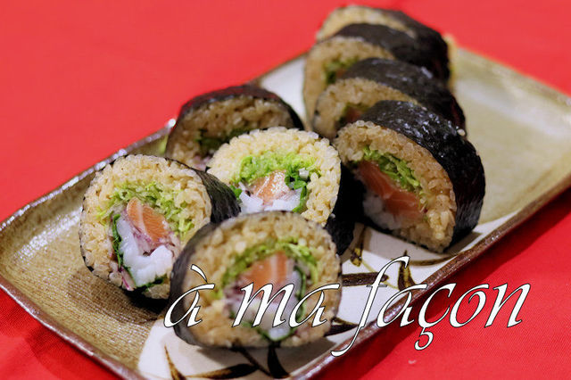 ◆海鮮恵方巻き◆ワインビネガーとバルサミコで合わせた寿司酢を使っています。
