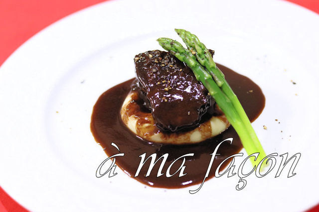 ◆牛ほほ肉の赤ワイン煮込み、ボルドー風。/ Joues de boeuf Bordlalise