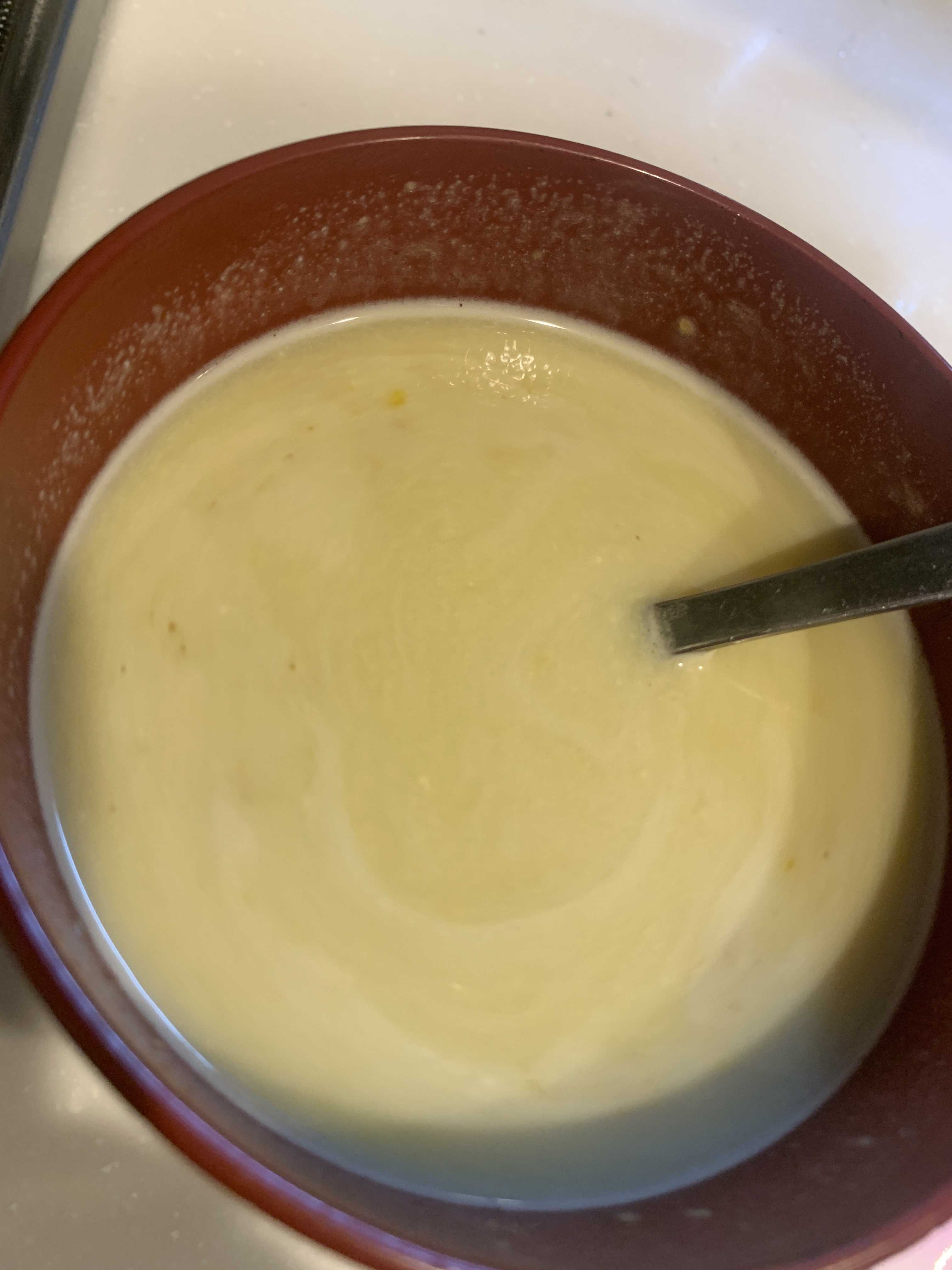 気を取り直して朝ごはんはコーンスープ。
