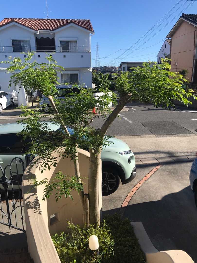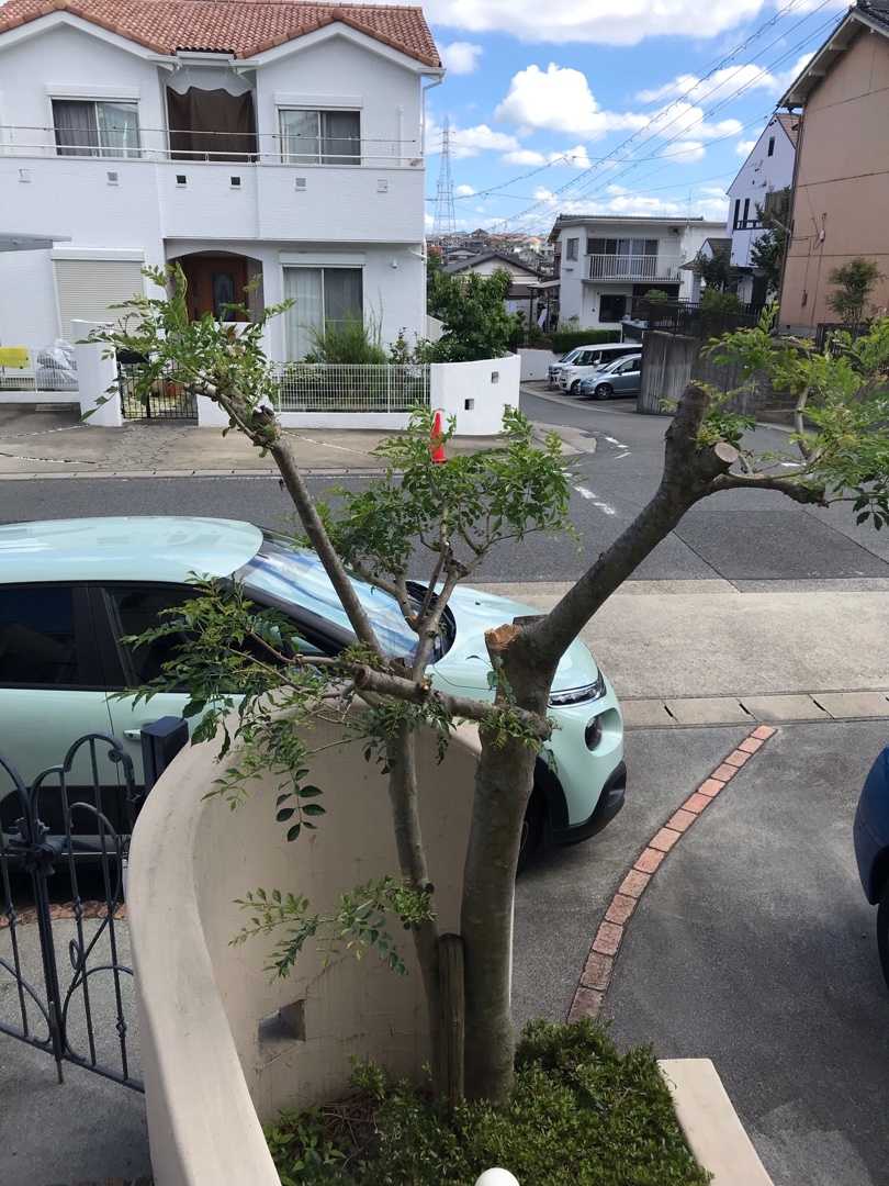もさもさしすぎ だいぶすっきりしました。葉で隠れていた向こうの建物が見えるようになりました。 ここまで切るとやりすぎたかな。視界が開けました。 やりすぎたかな。と思いながらシマトネリコの強剪定をしてみました。 手の届かない高さになるときついんですよ。管理が。 YOUTUBEを見ながら、今回は小さくしてみました。 現在の樹高が2m。高くても3mまでにコントロールしたいです。