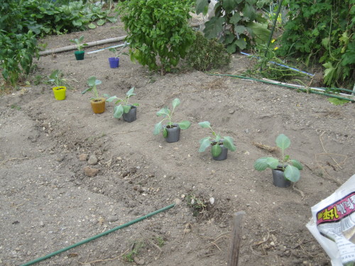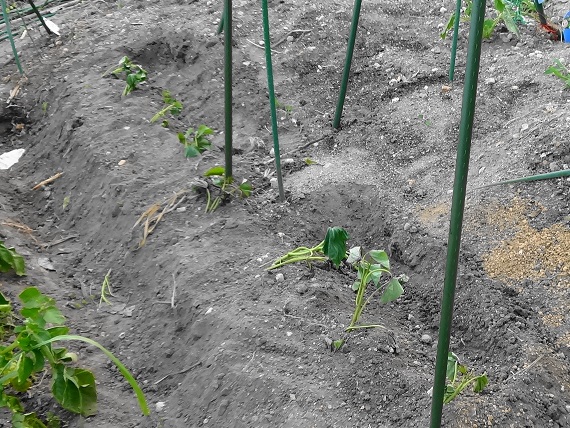 ご近所の農協で、25本、550円。そらまめを撤収した空き地に 8本 30cmおきに植え付け。雨が降るのを期待。
