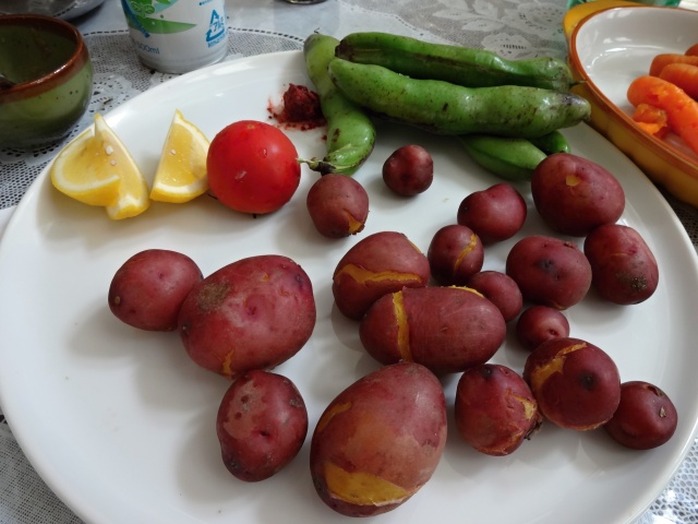 四角豆をまきました。先日とったジャガイモ、掘り残しがたっぷり。インカのルージュをゆでていただきました。ほくほくしてクリみたいで美味しかった