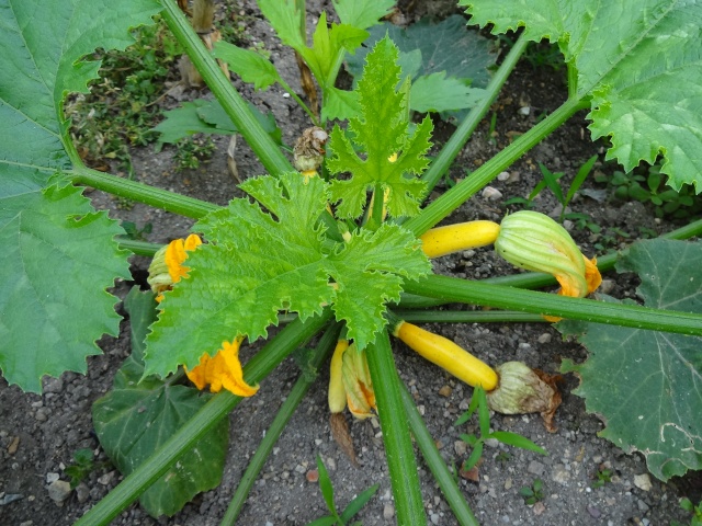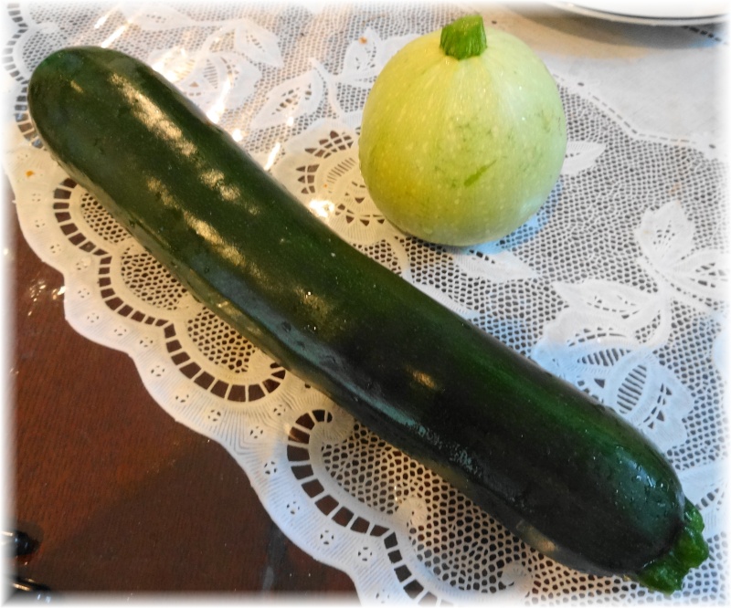 ズッキーニ2種類とれました。丸いのがグリーンエッグ。まっすぐみどりのがブラックトスカ。売り物と遜色なくいい感じです。