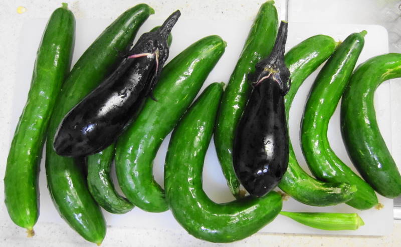 このところ、毎日収穫していたきゅうりとナスですが、昨日の収穫で一区切り。明日くらいとり頃の実がごろごろしています。 明日早起きして収穫しなくては! 少しナスが肥料切れな印象になってきたので、追肥しました。元気になりますように。
