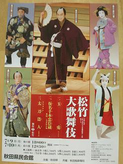 昨日、『歌舞伎』」鑑賞に行った。 今まで観るチャンスがなかったので、・・・ 今回、友人のお陰でチケットを少し安く手に入れる事が出来、 「行ってみよう!」と言う事になった。 生歌舞伎は新鮮だった。 「役者さんはすごい長ゼリフをよく・・・」と感心したが、 「言葉の理解はなかなか難しいナー」と思った。