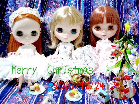 今年は、「それぞれのクリスマス」と称して、色んな子のクリスマス写真を撮ろうと燃えていました・・・。でも、結局は当日まで写真を撮る事はなく、企画倒れしました。上の写真は、我が家にいるブライス嬢達のクリスマスパーティー模様です。サイズがデカイ・・・!!手前に写っている素敵なガラスのツリーは、リンク先の美羽子さんから頂いたものです。本当にありがとうございます!!左側にいる子は、今まで隠し子だった「ラストキス」のブライスさんです。名前は考え中です。本当は我が家には、4体ブライスがいるのですが、一人は箱入り娘なので、今回は3人です。撮影していて分かった事があります。それは、真ん中のアキちゃんが、右側のピカのことが嫌いと言う事です。もうピカの存在自体無視していました。ピカはアキちゃんに嫌われている事も気づかずに、健気に話しかけています。・・・が、その声はアキちゃんには届かずじまい。悲しい!!悲しすぎるよ!!アキちゃん、可愛くなって態度がでかくなったみたいです。そんな2人の関係を、ラストキスのブラ子さんは「若いわね~」と思って見ています。ラストキスのブラ子さんは、2人よりちょこっと年齢が上な感じがします。