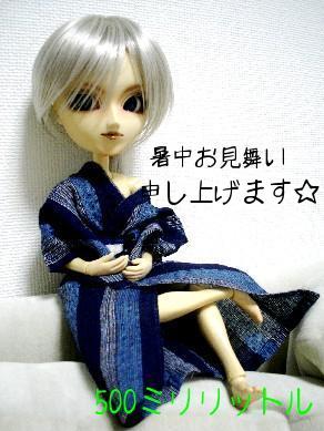 ブログを書き始めて、今日でちょうど2年目になりました。でも、この3ヶ月はサボっていまして、開店休業状態でした。これからは、またちょくちょくマイペースに書いていきたいです。写真のイケメン(←親バカ)は、カリスマカスタム師の夢魔さまにメイクカスタムしていただいた元おおかみさんのナムです!!浴衣は、リンク先のIZAYAさんのショップで購入しました。涼しげでいいですね~(*^▽^*)このナムなら(まだ名前がありません)、浴衣を着崩して着るだろうと思いこのようなちょっとセクシーな感じになりました。この前の日曜日に、友達のお仕事をお手伝いしたら次の日に足が筋肉痛になり衰えを感じた500ミリリットルですが、今後もよろしくお願いします(^。^)