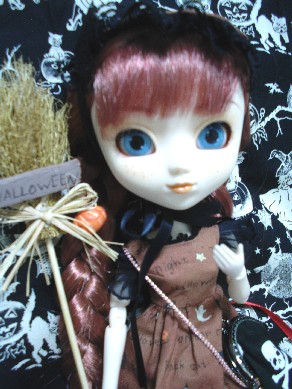 ハッピーハロウィン!!第3弾は、ファナティカのシンクレアさんです。ファナティカって私の中で魔女っ子なイメージがあるんですよ!!漆黒でウェーブヘアーだからかな?お洋服は、ドールショウで買ったブライス用のものです。シンクレアに似合う似合うと思っていたら、本当に似合っていて可愛い!!親馬鹿炸裂。今回ハロウィン画像で使ったバックの布は、全部縦15センチ×横30センチの横長の布なので、画像もバストアップのものばかりなんです。全身を写そうものなら、バック布のそのまたバックによからぬものがたくさん写ってしまうので…。私の汚い部屋とか(苦笑)どうやら、私がプリプを買うときによく利用するお店では、10月ッコが11月に入ってからの発送みたいです。ダルのダータが、テヤンのシェードと一緒に送られてくるので、皆様より一足も二足も遅くのご対面となります。早くおいでよ~!!名前はもう決まっているんだからさっ!!早っ。テヤンと一緒に来ると、まるでダータはシェードの妹みたいですが、きっと違います(笑)君の兄君は、我が家にはいないけど、早くおいで☆彡