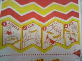 今日の朝ごはんは牛丼でしたなので、朝から胸焼けで苦しんでましただけどもだっけど新発売のチーズたまごダブルマックと、シャカシャカチキンにそそられ、ランチはマクドにいってきました(;゚∀゚)=3チーズたまごダブルマックはブラックペッパーがきいてて、ちょっぴりスパイシー辛いのがちょっぴり苦手なのでがピリピリシャカシャカチキンは・・・こんな感じで書いてあったので、その通りに出来たと思ったんですが、見事に粉がかたまって付いてしまった。。。コツいるんかなぁ謎です(。-`ω-)ンー 再度チャレンジだぁ いつか・・・ポテトも、たま~~にむしょぉ~に食べたくなるんですだからモチロンポテトも食しましたでも・・・でも・・・胸焼けしてたのにもかかわらず、マクドで油ものパラダイスWパンチで、胸焼け・胃もたれのヒットパレードでした