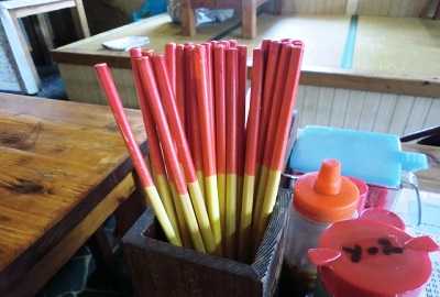 沖縄の食堂や居酒屋では今でも割りばしの代りに置かれているお店もあります。