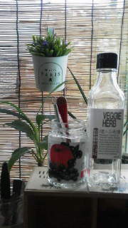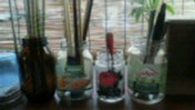 可愛い瓶を捨てず、箸立などに使用。 小さなグリーンで涼し気に。