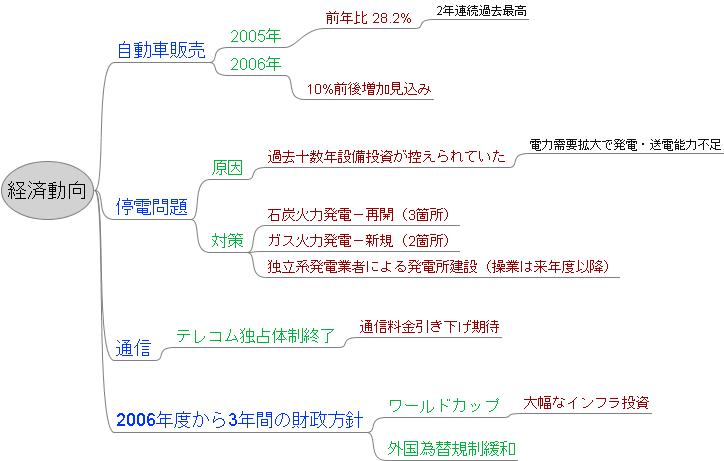 南アフリカの経済情報についてちょっと調べてみました。経済のことは、はっきり言ってさっぱりわからないんですが、とりあえずは、いろいろ調べてみるところからいってみようと思っています。で、今回は、英語のサイトではありません(^^; 日本貿易振興機構(JETRO)そう。あのジェトロです。 #ってーか、最初にここみろっつーの。。。>自分まず、概況の中の経済動向のところに書いてあるのをまとめてみました。(クリックで拡大)これで何がわかるかってーと・・・もにょもにょもにょははは。やっぱりわかんない「外国為替規制緩和」って何のこといってるんだろ・・?ふぅ~。気を取り直して、今度はアーカイブスにある 基礎的経済指標の統計のExcelから GDP 産業別構成をグラフにしてみました。(クリックで拡大)気になるのは・・・・鉱業・採石が減ってます。単位はランドなので、為替は関係ないはず。うむぅぅぅぅ・・・・・・金相場の影響を受けることが多いランドですが、GDPの比率からみたらそんなに多くないのでは・・・・あっ、もしかして金が影響するのは、他の箇所(産業)??うーん、まいっか。。。。確実にGDPはぐいんぐいん伸びていますので。で、ほとんど横ばいで帯が薄い電気や建設は、最初の経済動向を自分なりに解釈すると、増えていくのかなぁ~なんて思ってます。どうなんだろ?? う~ん良くわかんないけど、そうだと信じよう次に、 GDPと消費者物価の上昇率をグラフにしてみました。(クリックで拡大)2005年度の実質GDPは4.4%くらいになるようなこと書いてあったんで、成長率はほぼ横ばいですかね。消費者物価の上昇率が下がってますが、こいつは政策金利には影響しないでしょうかね・・・気になります。。。。以上、総合して何がわかったか?というと、はははは。。。何がどー影響あるんだろーーー(^^;わかる人にはわかるんだろかぁ??はは。ま、いーや。何年もこーゆーの見ていけばそのうちにわかってくるだろーしー注:売買はくれぐれも自己判断でお願いしまそ関連記事 ●南アフリカ 金利0.5UP&声明● ●南アフリカ経済指標 小売&自動車● ●南アフリカ CPIとPPI(06'04-07)● ●南アフリカ経済情報だよ● ●南アフリカ情報を集めてみたよ● ●南アフリカについてちょいと調べましたよ・・● ●指標の略字を少々まとめてみました●TB先: にほんブログ村→為替ばちばち書いてたら、、、はぅ・・・人民銀行ってばいけずぅ・・・いっつも、日本のリーマンが一杯やり始める頃に・・この記事のカテゴリは「外国為替」です。過去の記事もご覧いただければ幸いです。<自分のスタンス>スワップメイン余裕残してる部分でちょろちょろ取引ブログランキング参加中。1日1回ぽちっとしていただけると、ありがたや~です【よんだよー】エリオット波動ビジネスサイクルはじめてのテクニカル分析相場の正しい捉え方マンガ相場の神様本間宗久(そうきゅう)翁秘録働かずに毎年1000万円稼げる私(わたし)の「FX」超活用術