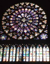 写真は「ノートルダム寺院」のバラ窓です。でもステンドグラスが
