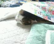 猫たちはみなダンボール箱が好き。空き箱を置いてあると、そこの中に入る。また、器用に入って寝てる。たまに苦しくないのかなその姿勢がある。