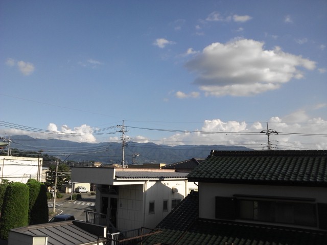 まだまだ猛暑の日本列島。先日、山梨に行った時には奇跡的?にやや涼しくて、タクシーの運転手さんに思わず、「この涼しさって今日は特別ですよね?」と、聞いてしまったほどです。予想通り、いつもよりずっと涼しい日だったようですが、でも「昼間は暑くても、夜はわりと涼しくなる」んだそう。熱帯夜のムシムシした埼玉よりも過ごしやすい気がしたのは、窓から山が見えるせいかもしれません(^_^;)8月4日の土曜日、カジューロの部屋からの風景です。善光寺というお寺がすぐそばで、のんびりとした穏やかな空気を感じる町です。窓から山並みが見えるって、癒されます去年の夏は、お仕事でチャリをとばしていたせいか、じりじりと焼けるような暑さが印象に残っています。今年は、外に出るだけでじっとりと湿度の高さがたまりません(@_@;)冬の寒さの時も、ユニクロのヒートテックに助けられましたが、この夏も、ユニクロのサラファインがすっごく良いです(*^_^*)汗を吸い取って熱も放出するため、着ている方が涼しいとの宣伝に「ありえな~い」と思っていたのですが、試しにフレンチスリーブのサラファインシャツを買ってみたら、これがホントだったのですよピッタリと体に張り付くので汗を吸い取って、その後ジメジメしないし、汗臭さも抑えてくれるので、薄手のシャツの下に着ていると、綿100のTシャツを着るよりも涼しく感じます。それで、もうこの夏はサラファインが手放せなくなりました。私、けっしてユニクロの回し者ではありませんが、汗でべたつくのが嫌な人はぜひお試しください。そろそろ秋モノに替わって来ていますので、今がお買得のチャンスかも!!私も、来年用にもう少し買っておこうかと思ってます。オシャレ度はそこそこなユニクロですが、肌触りと機能的にはナンバーワンかな、私には。それにしても、早く涼しくならないかなあ。今週はチョロジの予定が何もなくて、でもお出かけしたいチョロジと毎日どう過ごすかが課題。とりあえずお盆ということで、お墓詣りに。TO-CHANのお墓と、私の両親のお墓に行ってきたので、明日はTO-CHANの父のお墓に行こうかと思います。全部場所が離れているので、1日にかけもちは無理なので、1日に1か所ずつ行くことになります。お墓詣りがすんだら、博物館か水族館あたりに連れて行こうかな。チョロジは遊園地の方が好きなのですが、こう暑いと私の方がへたってしまいそうで。。。(>_