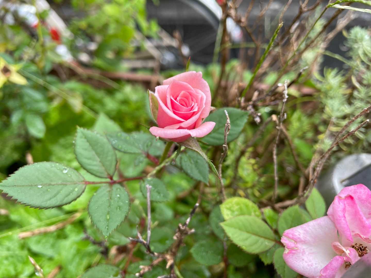 昨日の朝、もうすぐ咲きそうな開き始めの蕾のバラ。