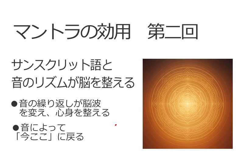 第2回:サンスクリット語と音のリズムが脳を整える■サンスクリット語の構造と音の規則性サンスクリット語は、「最も完璧に近い言語」とも称されます。 それは、発音が母音と子音の規則的な構成に基づき、 声に出したときの響きが非常に整っているからです。この言語の音には、一定の振動とリズムがあり、 発声することで身体と脳に“音の調律”を起こすように設計されています。つまり、マントラとは「音によって心と身体を整える言語工学」なのです。 ■音の繰り返しが脳波を変える一定のテンポでマントラを唱えることで、脳波が変化します。α波(リラックス)θ波(創造性・瞑想状態)マントラの音は、これらの状態を自然に引き出すと言われています。 これは、脳が“音の振動とリズム”に同調する働き(エンストレインメント)によるものです。さらに、サンスクリット語のマントラには 微妙な高低・長短・強弱のバランスがあり、それが神経系全体を穏やかに刺激するマッサージのような働きをします。■音によって“今ここ”に戻るマントラを唱えているとき、私たちは音の響きに集中します。口の中の感触喉を震わせる感覚音が身体に響く場所こうした体感に意識が向くことで、 過去や未来ではなく「今、ここ」に心が戻ってくるのです。これは、マインドフルネス(今に集中する技法)と非常に似ています。 しかし、マントラは思考を止めようと努力するのではなく、 自然と音が“いま”へ導いてくれる点が特徴的です。■音の繰り返しが心身のリズムを整える心臓、呼吸、脳波――私たちの身体にはリズムがあります。 マントラの繰り返しによる一定の音のテンポは、 これらのリズムと“共鳴”し、統一されたハーモニーを生み出すのです。実際、マントラを一定回数繰り返す瞑想を行った被験者の多くが、脈拍の安定呼吸の深まり筋肉の緩み を実感しています。つまり、音は「外から聞く癒し」ではなく、 「内側から整える再チューニング装置」なのです。 ■音の繰り返しが心身のリズムを整える心臓、呼吸、脳波――私たちの身体にはリズムがあります。 マントラの繰り返しによる一定の音のテンポは、 これらのリズムと“共鳴”し、統一されたハーモニーを生み出すのです。実際、マントラを一定回数繰り返す瞑想を行った被験者の多くが、脈拍の安定呼吸の深まり筋肉の緩み を実感しています。つまり、音は「外から聞く癒し」ではなく、 「内側から整える再チューニング装置」なのです。 おわりに:サンスクリット語の響きが整える“心の音階”私たちの心は、日々いろんな音にさらされています。 その中には、乱れたテンポや不協和音も多く含まれます。サンスクリット語のマントラは、 そんな心の音階を、静かに“調律”し直してくれる音の処方箋です。次回は、「声を出す」ことそのものが どのように脳と神経系を刺激し、身体や自信を強めていくのか? 声帯と集中力の関係にも触れながら探っていきましょう。