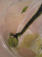 ってなわけで、今日は甘いものを食べてきました。KIHACHIの白玉とソラマメのパフェ?です。意外な組み合わせでちょっと冒険だったけど、なかなかおいしかったですよ。上にかかっているのが抹茶なのかどうかはわからないけど(それくらい味がしなかった)、抹茶が苦手な私にはちょうどよかったです。ソラマメって塩茹でくらいしか食べたことがなかったので、かなり新鮮な組み合わせでした。