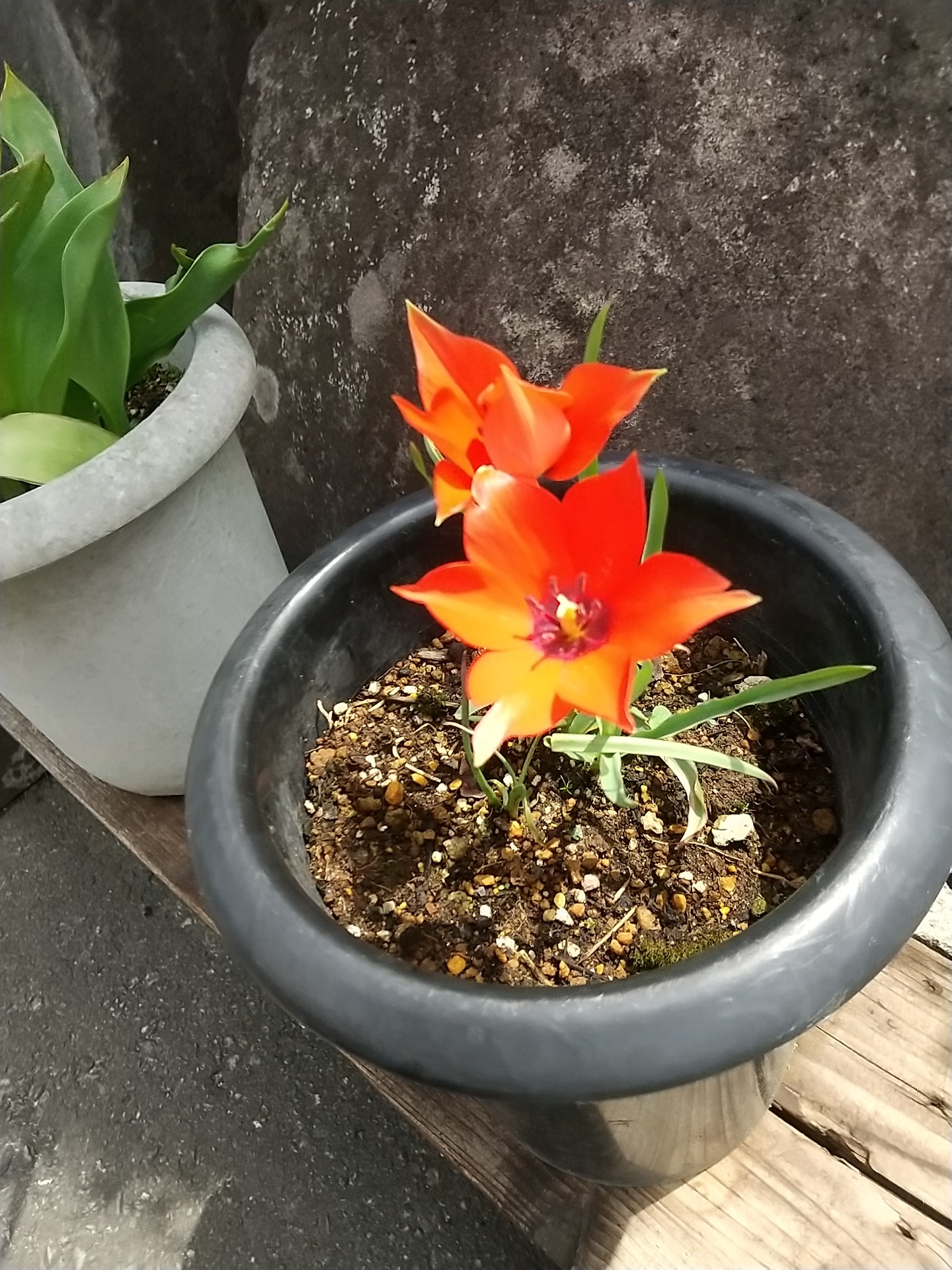 今日は、おじいちゃんの面会日でした。二週間前とちょっとおじいちゃん、様子が違っているように見えたのですが、気のせいだったのかどうか。うちの旦那様は、ただ元気そうだと言ってましたが私にはちょっと違って見えました。明後日、本式に入所の手続きをすることになりました。5日の月曜日です。朝から出掛けて説明を受けてきます。書類の提出をその後して、正式に入所となります。男性の入所者がいないことをおじいちゃん、何度も話してましたが、うーん、なんとも。二週間前に孫が(長男が)来るからと話していたのを覚えていて、来ないことになったと伝えるとがっかりしていたおじいちゃん。歯みがき粉が足りないと言われ(少し前に持っていったはずだけど)、洗口液もほしいと連絡があって、おばあちゃんをうちに送り届けた後で買いに行き届けてきました。だいぶはっきりしてきた部分と、同じことを何度も繰り返すところと少し短気になったところと。次回面接するときはどうなっているのかしらね。我が家のミニサイズのチューリップ。おともだちのうふふ大好きさんからいただいた球根、今年も可愛らしいお花を咲かせてくれました。感謝です。