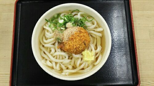 昨日の昼は、土器の麺輝屋。かけ中(2玉)290円+メンチカツ130円。セルフ店。 早朝からの営業だったが最近ちょっと遅くなった。