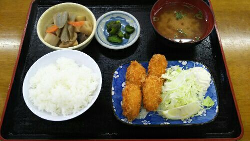 昨日の昼は、宇多津の昔ながらの飯屋つるぎ。棚に並んだおかずを取って精算するタイプ。まずカキフライが美味しそうでチョイス!小鉢のポテトサラダを取りたかったけど健康を考えて煮物の小鉢を付けて450円。