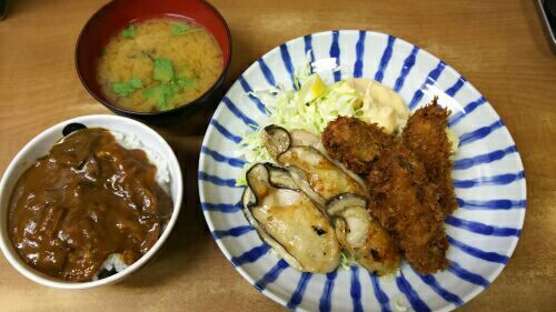 昨日の午前に築地場内。12月の土曜日なのでムッチャ混んでいるかと思いきや普通の混み。 でも小田保、食べるまでに1時間近くかかったので朝食のつもりがランチになった。カキミックス定食(フライとバターのハーフ&ハーフ)1650円+カレーかけ100円。値段相応と言えばそれまでだがカキは大きい!